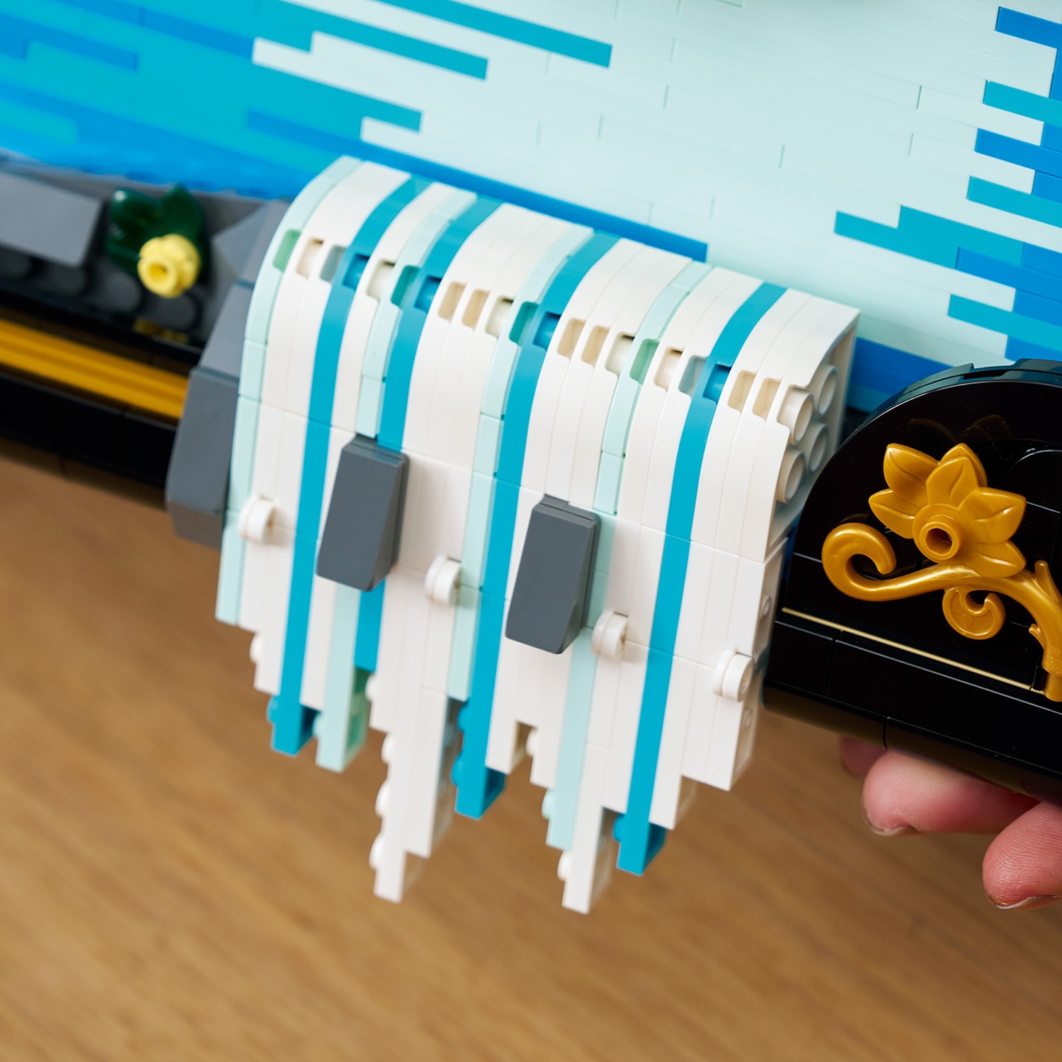 - Kohandatav 3D-kosk - LEGO kunstikomplektis on kosk, mis voolab raamist välja, nii et seinale riputatuna voolab see otse välja ja püsti asetatuna voolab tasasele pinnale