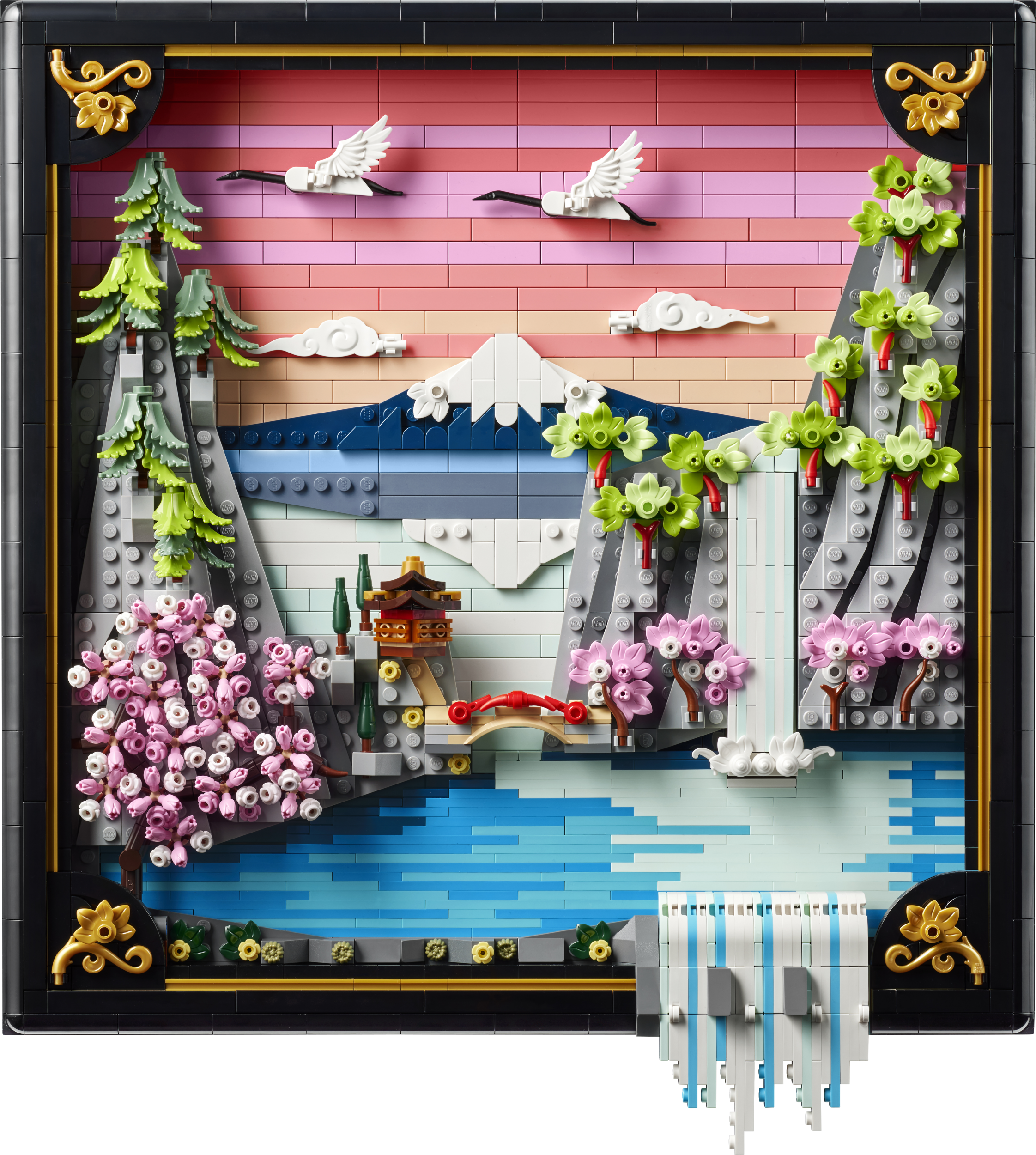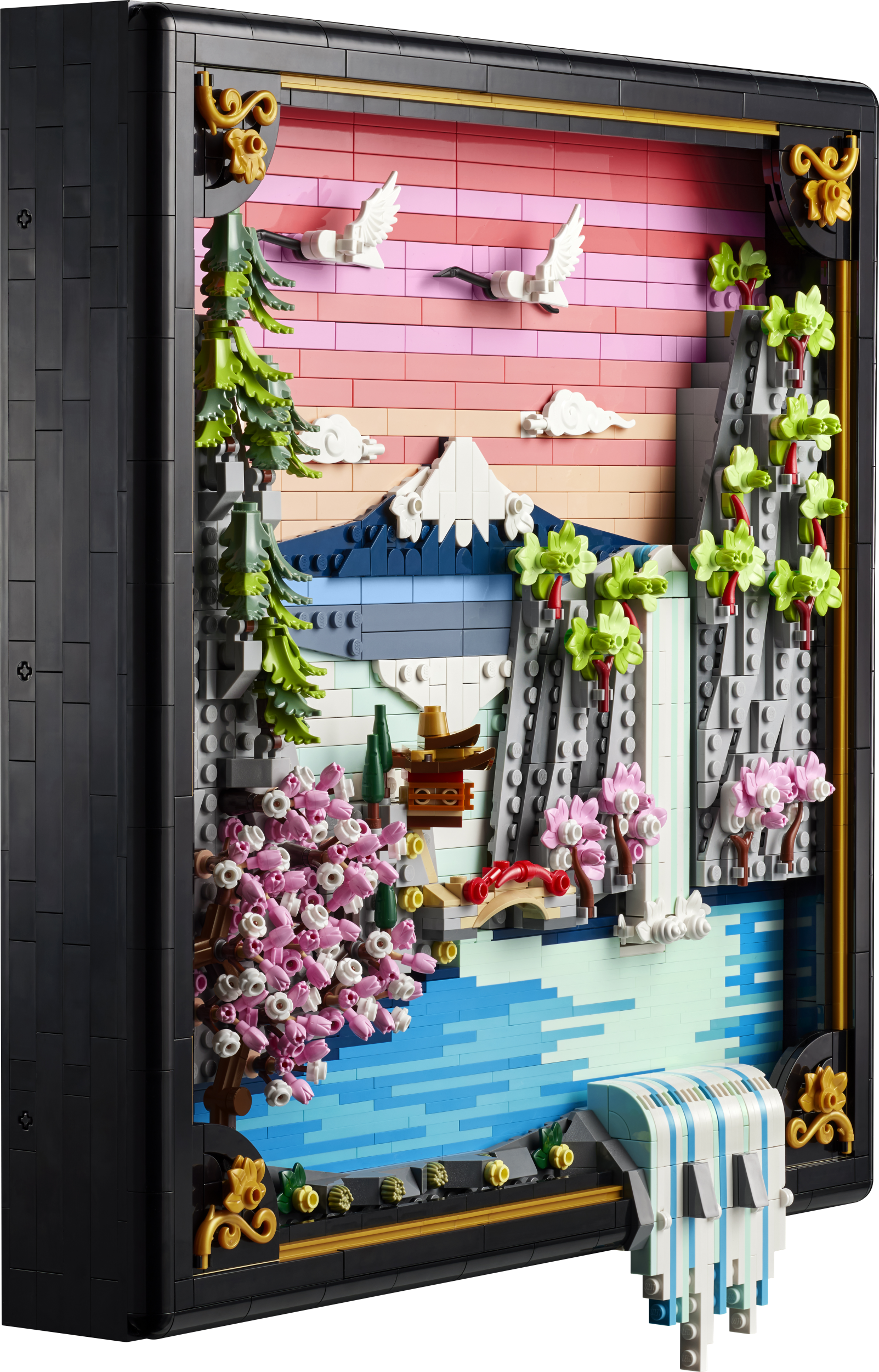 Too värvid ja loodus oma koju selle täiskasvanutele mõeldud LEGO® Art Jaapani kirsiõite maastiku (31218) ehituskomplektiga. Jaapani kevadise ilust ja riigi Ukiyo-e kunstnikest inspireeritud hämmastavas klotsidest ehitatud 3D-seinakunstis on Fuji mägi, teemaja, sild, kosk, lendavad Jaapani kured ja kirsiõied, Sango-Kaku vahtrapuu ja Jaapani „vihmavarjumännid“.