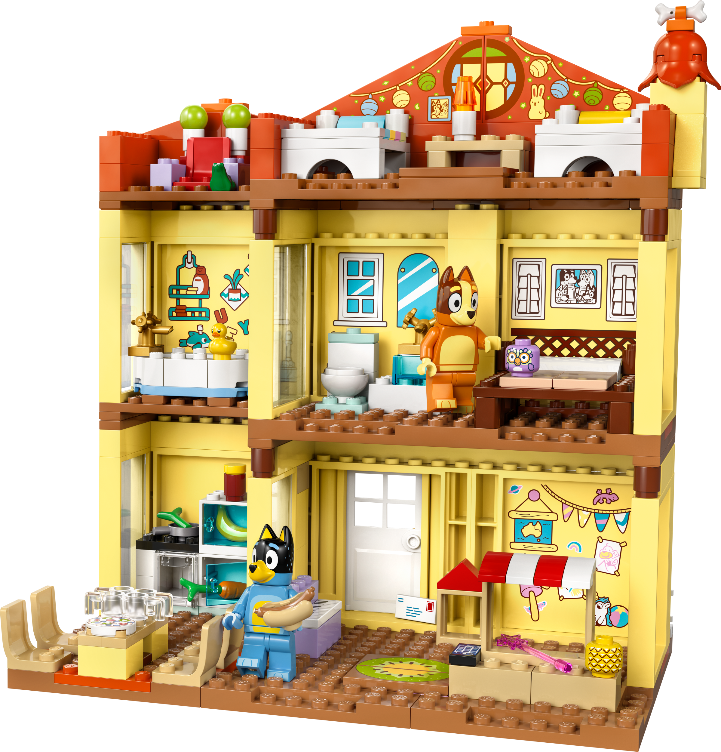 - Bluey maja mängukomplekt – lapsed saavad taasetendada lõbu telesaatest Bluey peremaja ehituskomplektiga, mis on mõeldud spetsiaalselt 4-aastastele ja vanematele poistele ja tüdrukutele