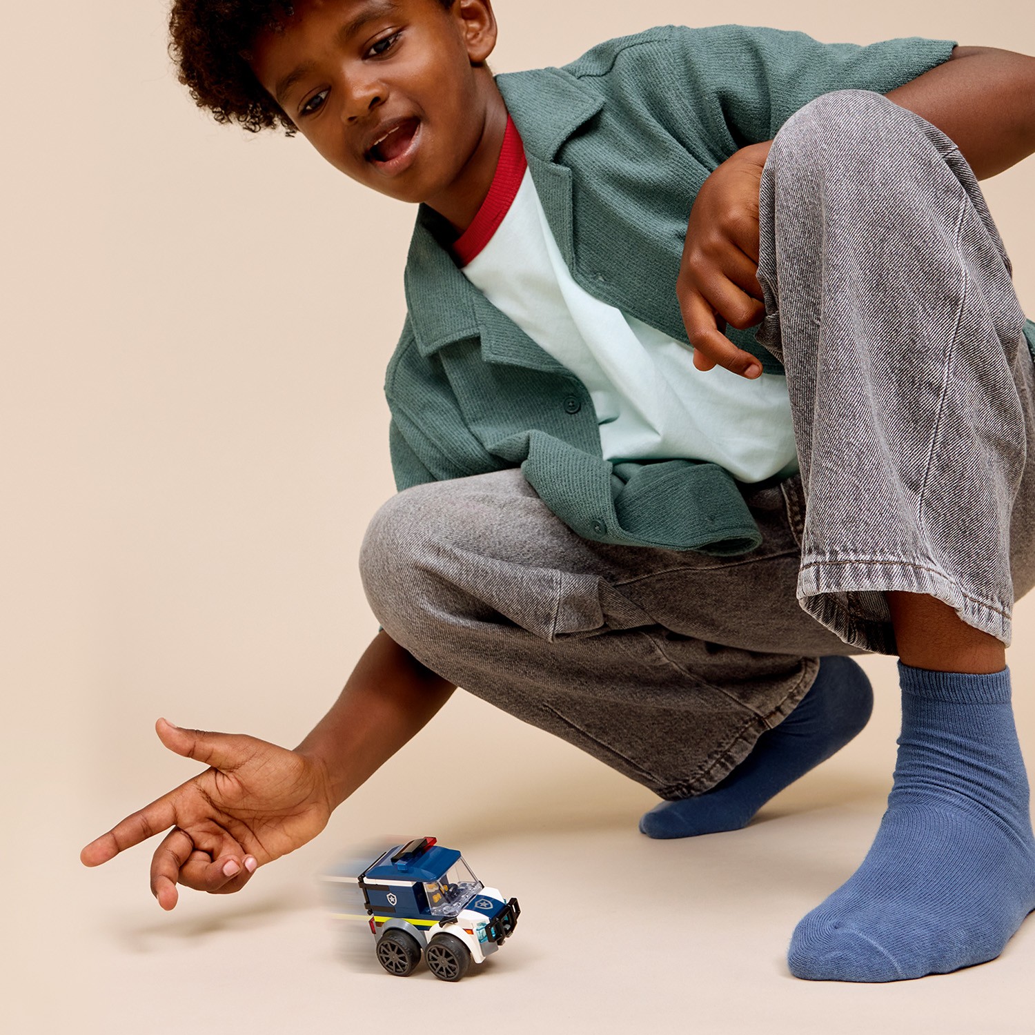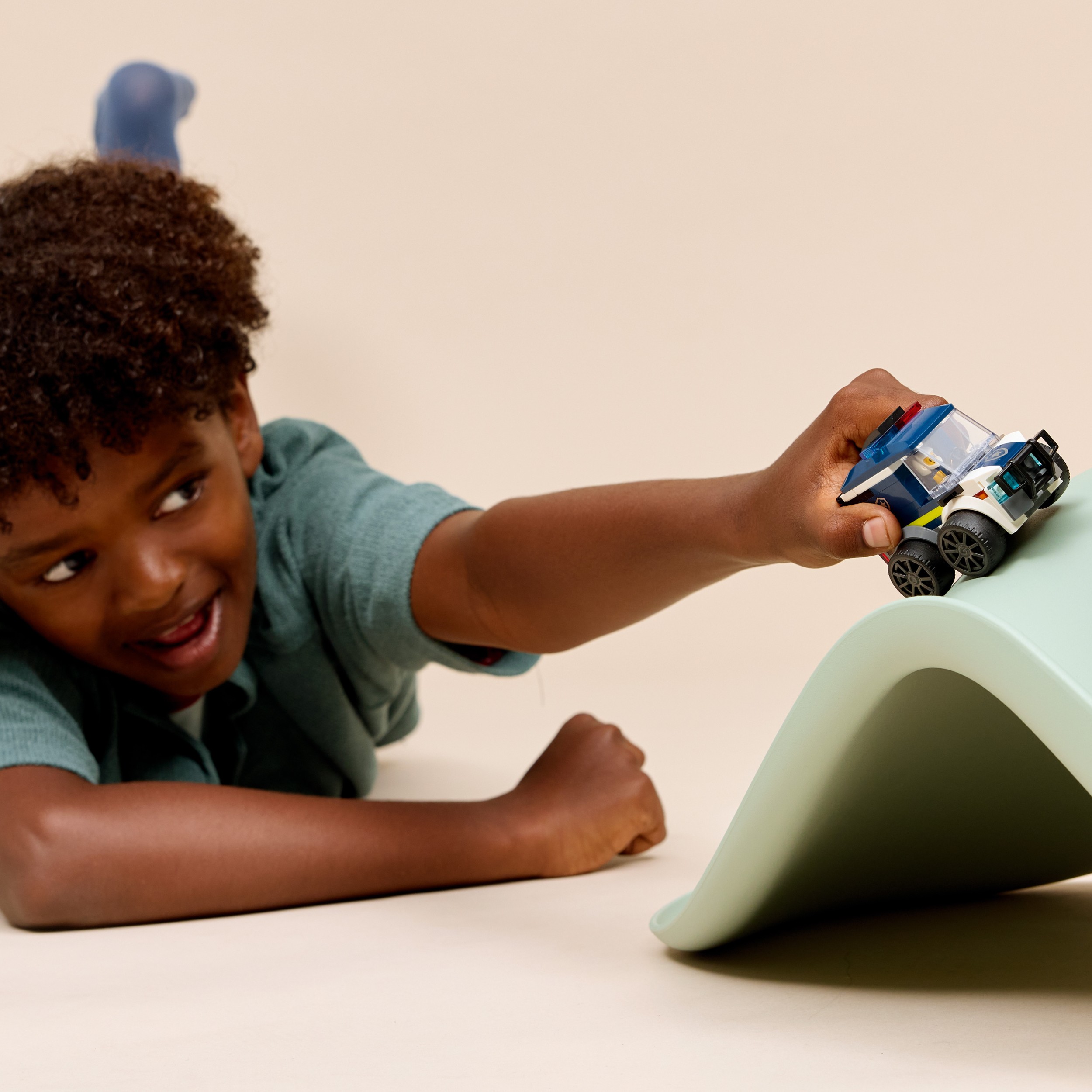 Lapsed naudivad LEGO City Sõidukid – politseiveoki täiustatud ehitamist rakendusega LEGO Builder, suumides ja pöörates 3D-s, salvestades ja jälgides samal ajal edenemist – seda kõike rakenduses. Komplektis on 71 osa.