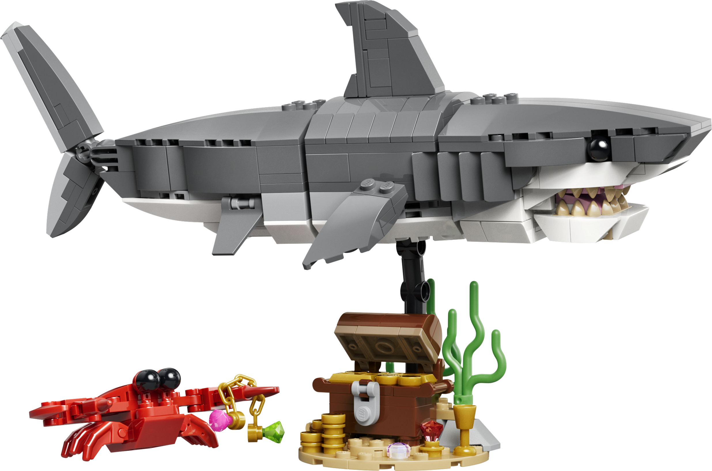 8-aastased ja vanemad poisid ja tüdrukud saavad selle LEGO® Creator sarja Raevukas hai aardekirstuga (31381) ehitusmänguasjaga mängida lõbusaid veealuseid lugusid. See muljetavaldav mereloomadega komplekt pakub lastele 3 erinevat ehitusvõimalust sama klotsikomplektiga.