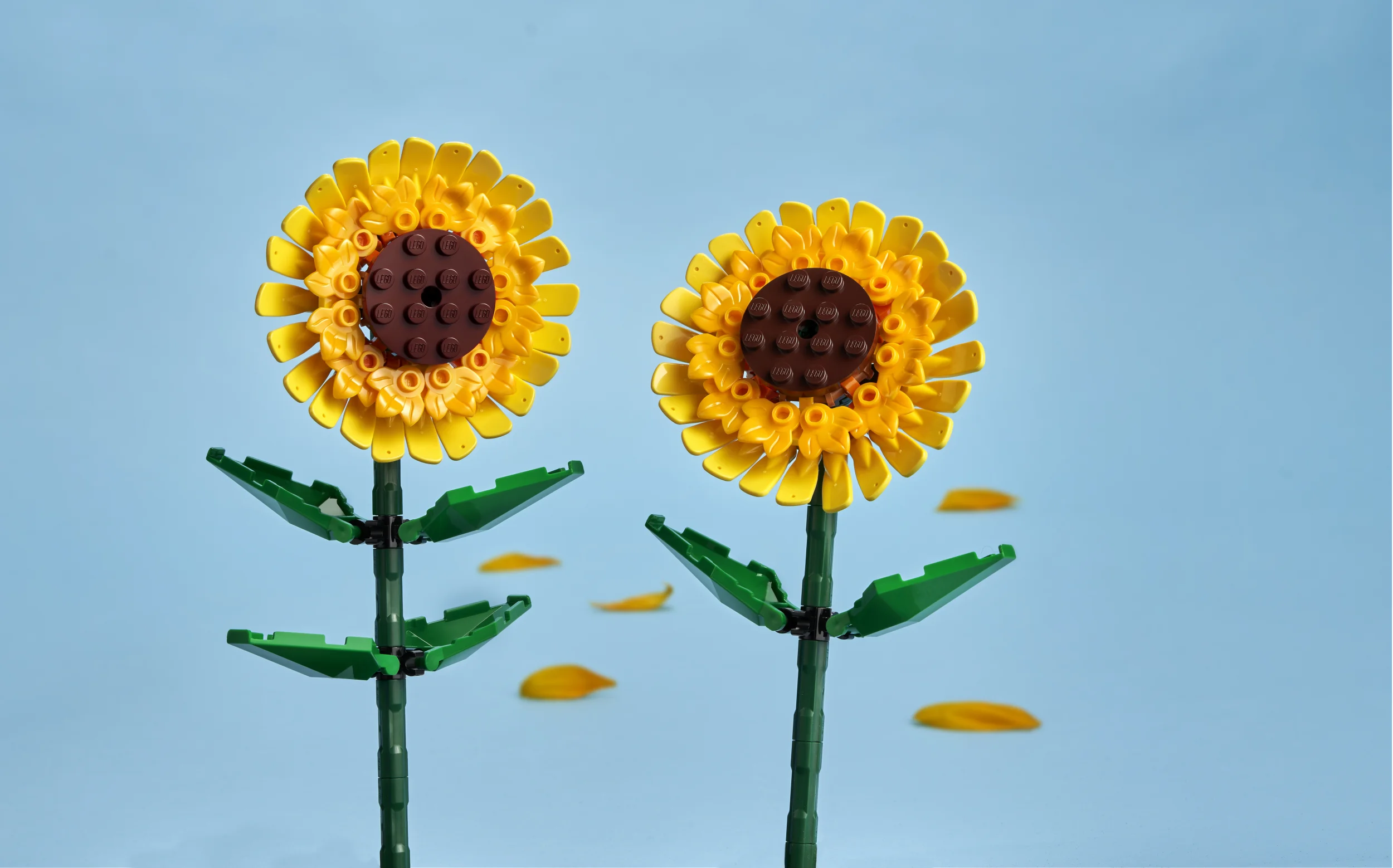 - Pane päevalilled vaatamiseks välja – loo värviküllase LEGO® päevalillede (40524) ehituskomplekti abil väljapanekuese, mis sobib igasse tuppa. Komplektis on kaks päevalilleõit, millel on kohandatavad rohelised varred ja lehed