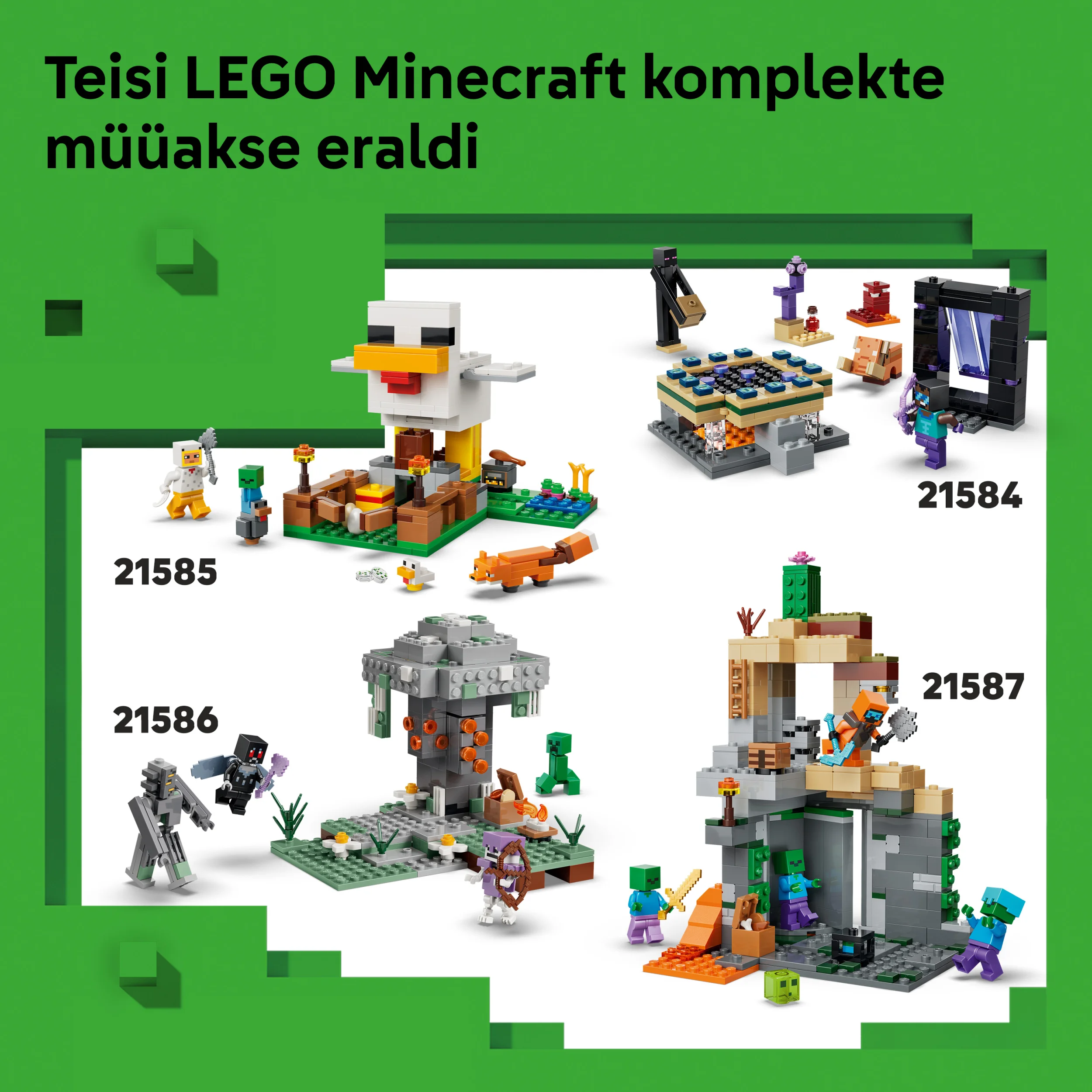 - Komplektid Minecraft® mängijatele - LEGO® Minecrafti ehitusmänguasjad pakuvad lastele laia valikut populaarse mängu tuttavaid stseene, funktsioone ja tegelasi