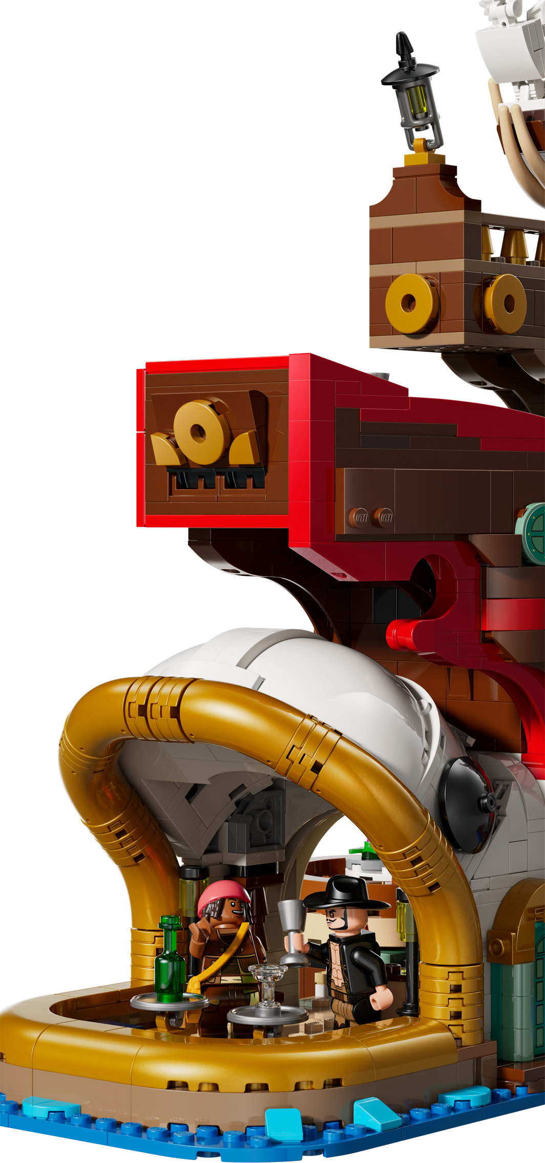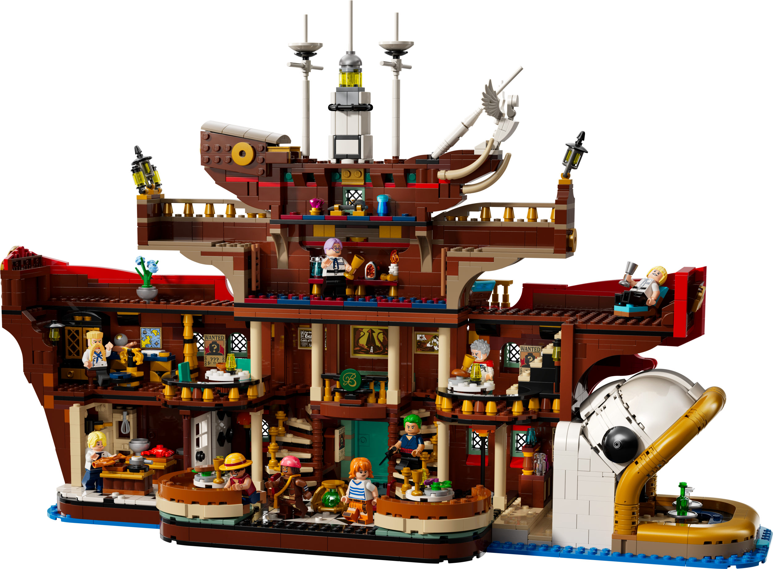 Selle muljetavaldava laevakujulise välekuesemejapan interjööris on palju ligipääsetavaid ruume, sealhulgas köök ja söögituba, Zeffi eluruumid ja aardetuba. Klassikalisi stseene saab taasetendada 10 LEGO minifiguuriga: Luffy, Zoro, Nami, Usopp, Sanji, Zeff, Garp, Helmeppo, Koby ja Mihawk. See komplekt sisaldab ka autentseid tarvikuid, sealhulgas 5 „Tagaotsitava“ plakatit. Rakendus LEGO Builder võimaldab kasutajatel ehitamise ajal mudeleid sisse suumida, 3D-s pöörata ja edenemist jälgida.