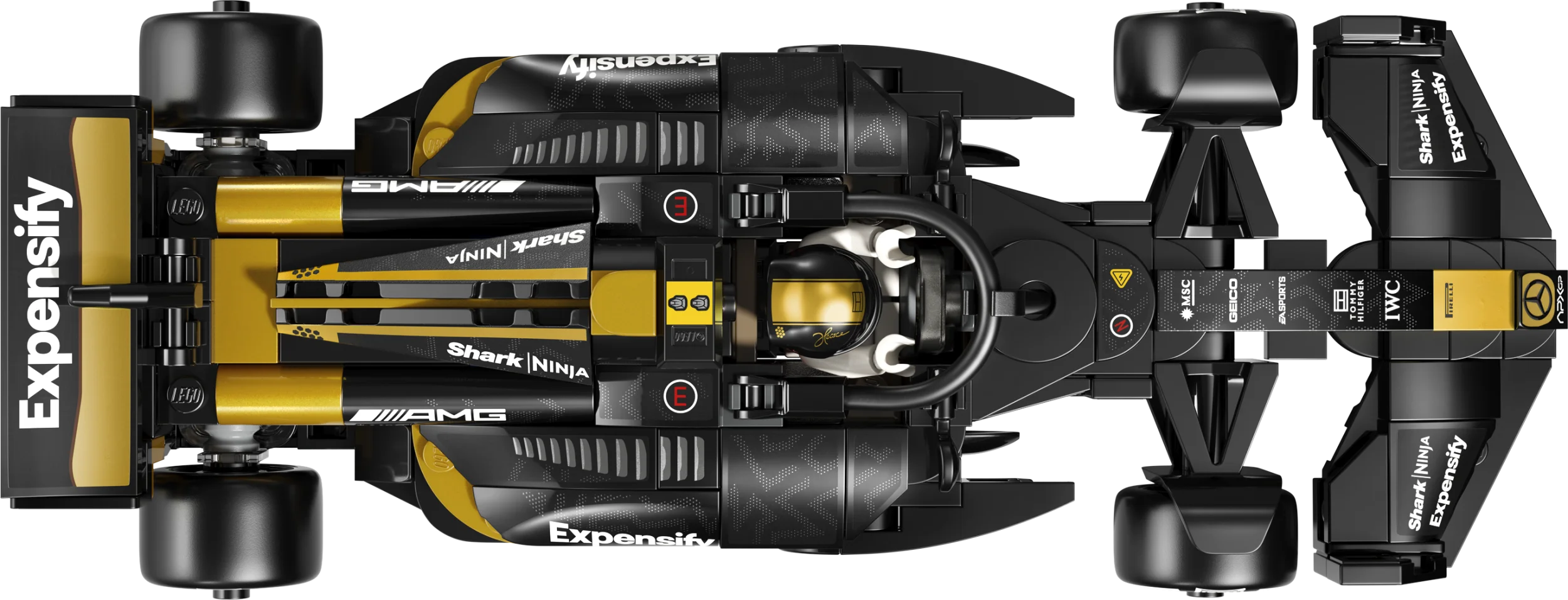 Sellel F1 mänguautol on filmiauto kujundusdetailid, sealhulgas must ja kuldne värvilahendus, sponsorkleebised ja laiemad tagarehvid, millele on trükitud „Pirelli“. Võidusõiduauto komplektiga on kaasas ka kaks filmist pärit F1 juhi minifiguuri: Sonny Hayes ja Joshua Pearce, kellel on autogrammidega kiivrid, parukas ja mutrivõti, mida saab kasutada ka kleepsude ja eraldi klotside paigaldamiseks.