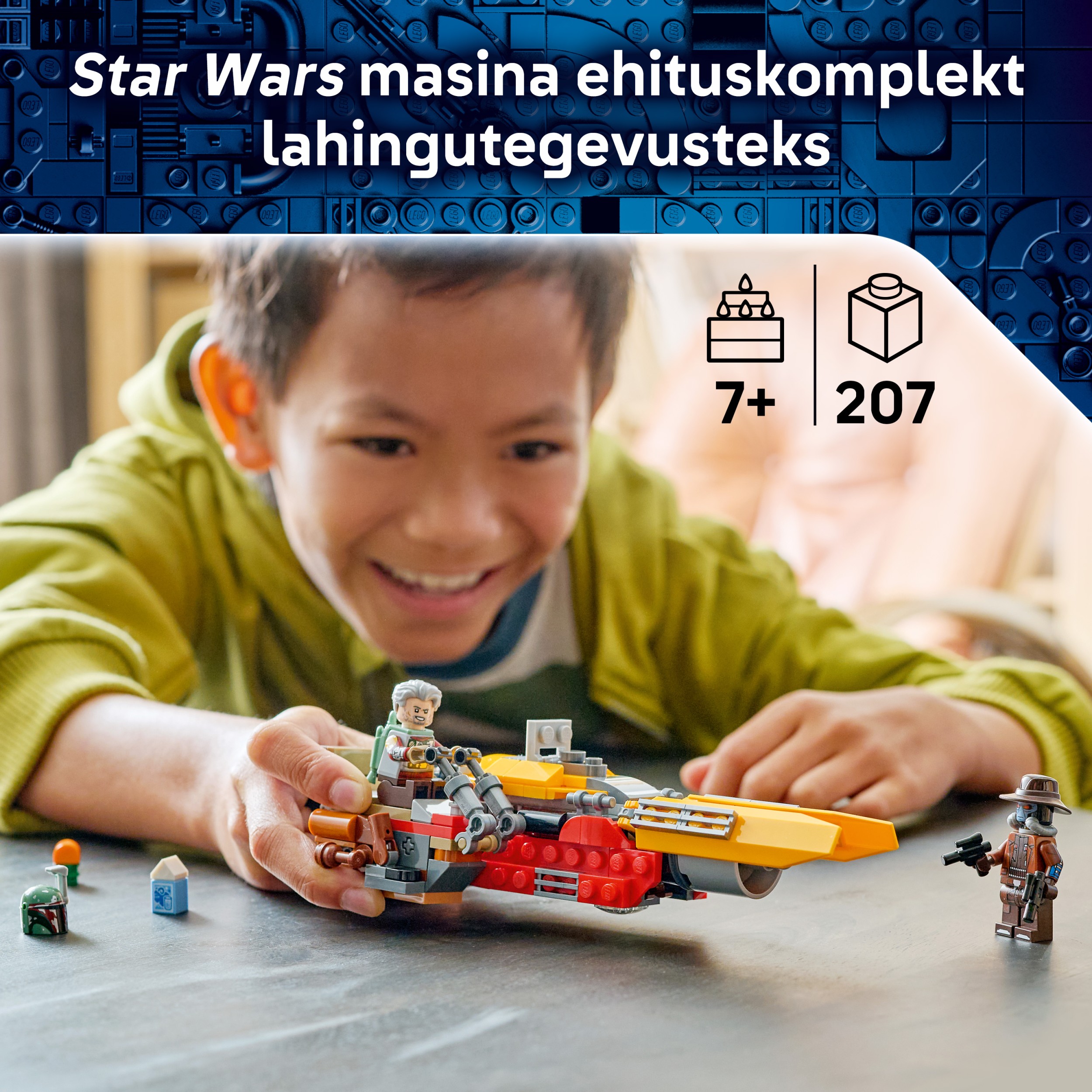- Sõiduki ehitusmänguasi – Kingi lastele LEGO® klotsidest kokkupandav versioon Cobb Vanthi kihutajast (75437) sarja Star Wars: Mandalorian™ 2. hooajast, et sõita lahingusse Cad Bane'i vastu
