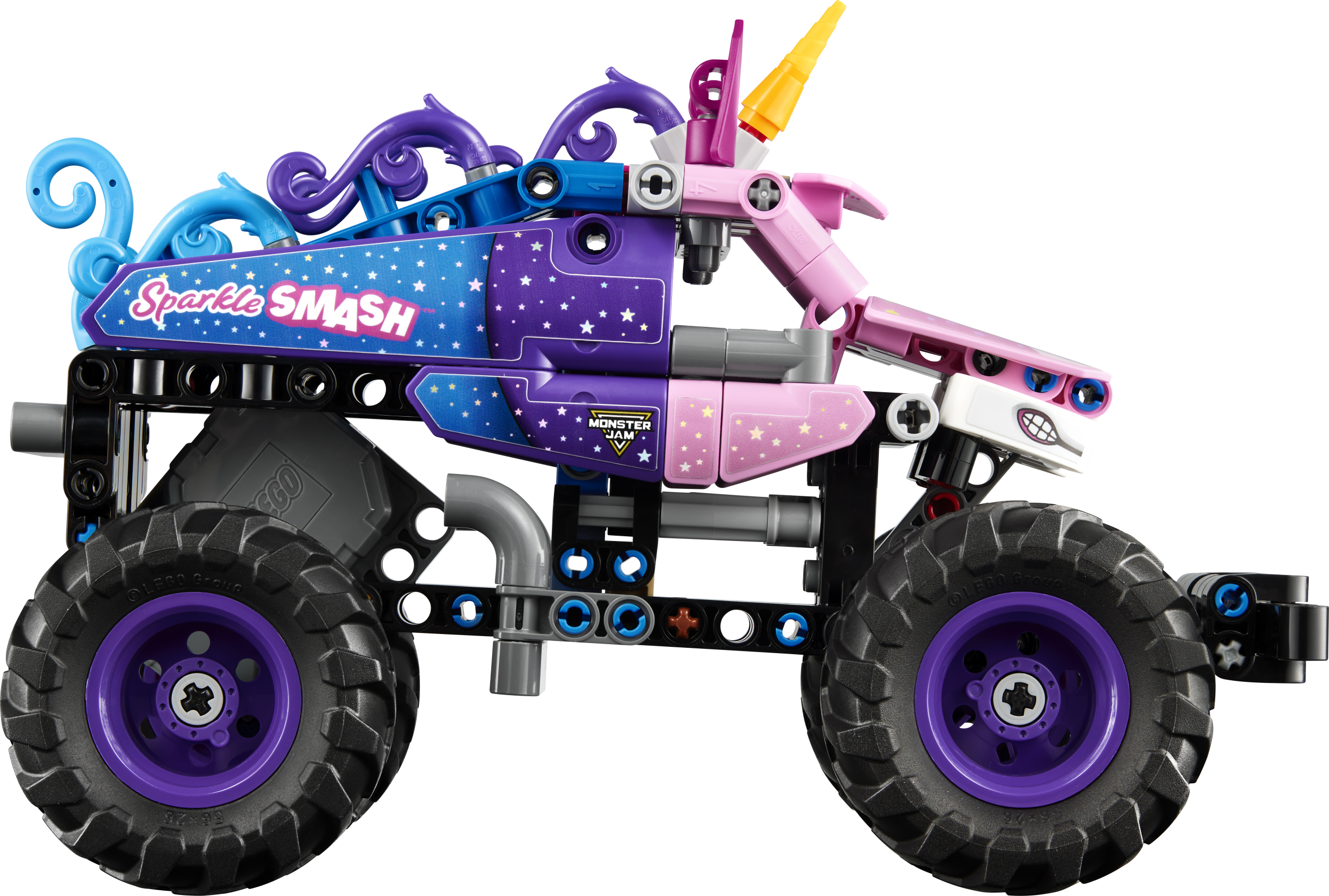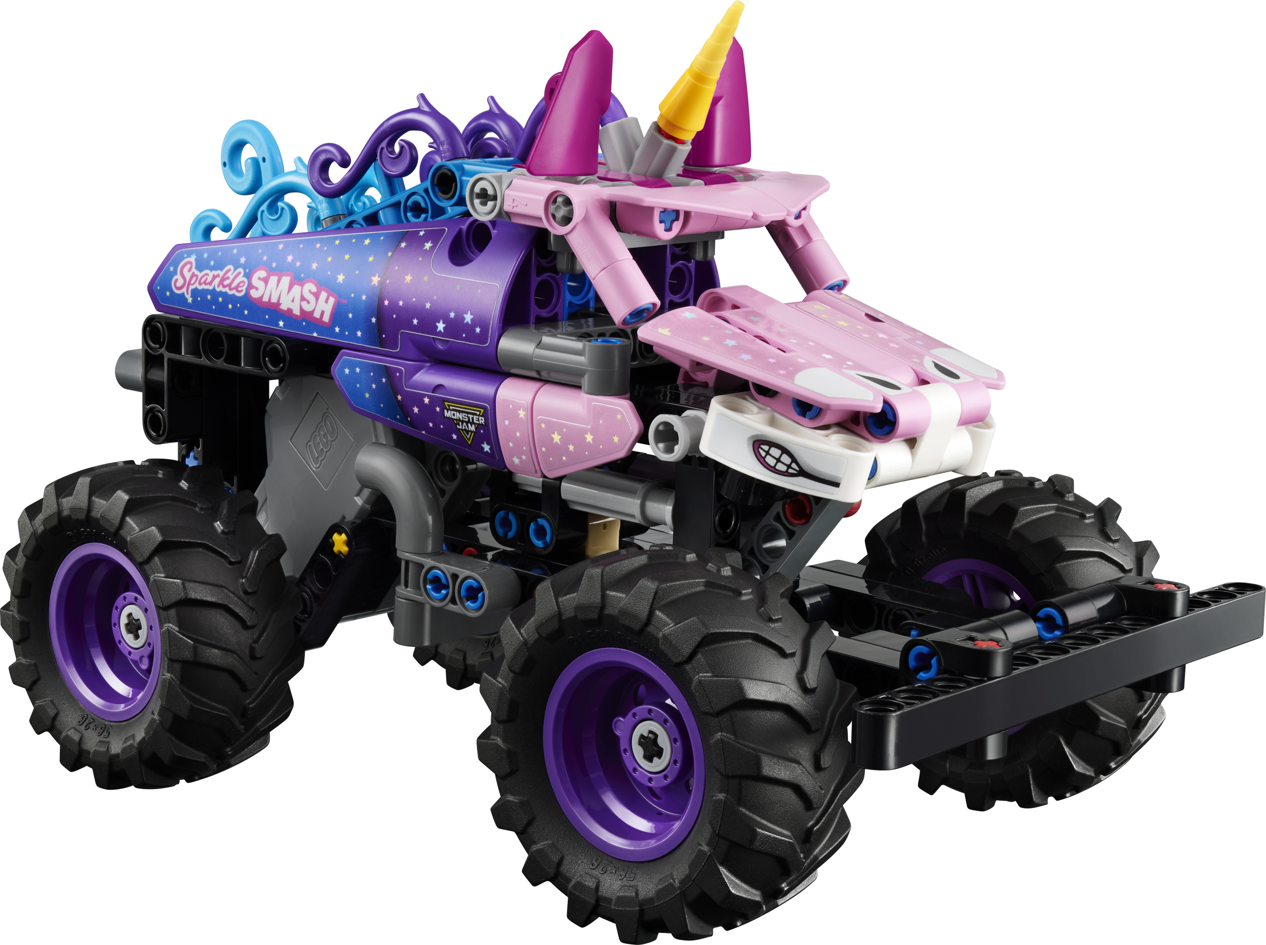 - Ükssarviku detailid – Selles Monster Jam™-i mudeli ehituskomplektis on autentsed disainidetailid, nagu sädelevad tähed ja kuulus ükssarviku sarv, mis on inspireeritud tõelisest Monster Jam Sparkle Smash™-i veokist