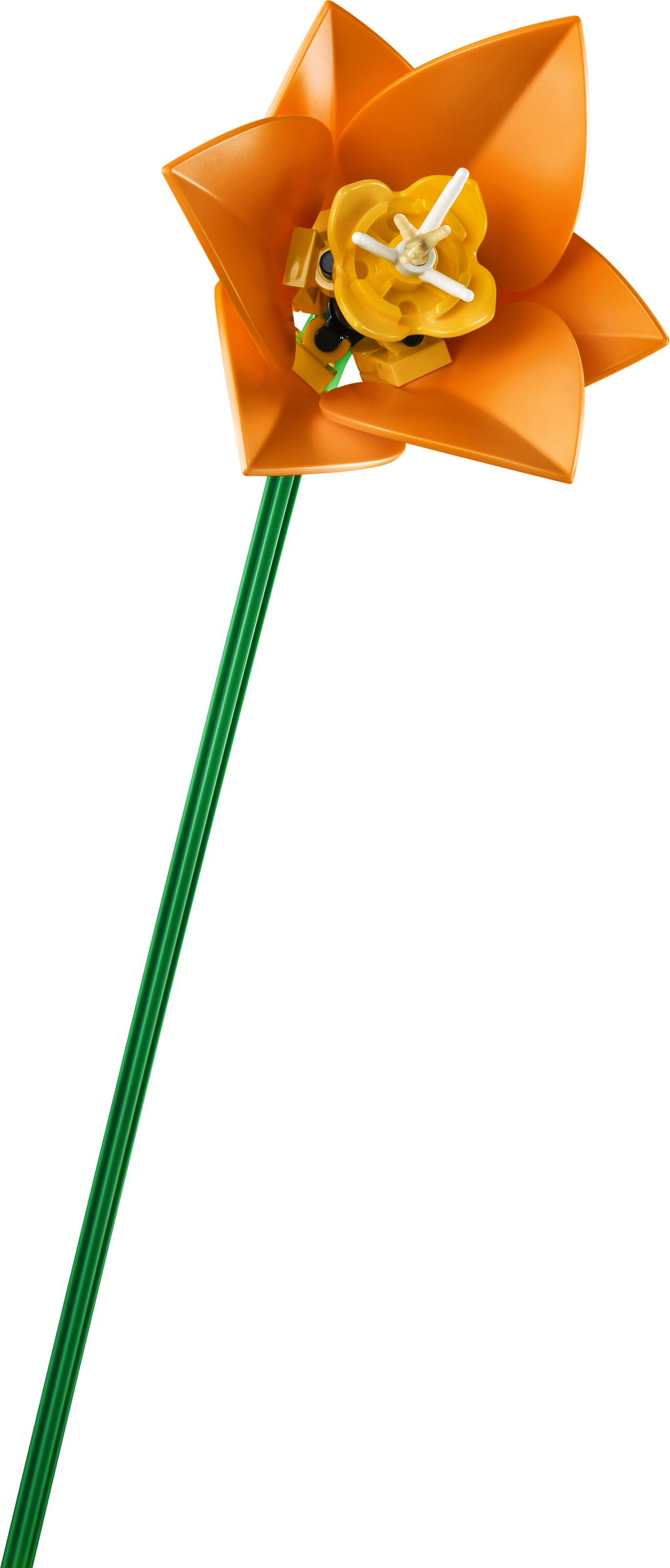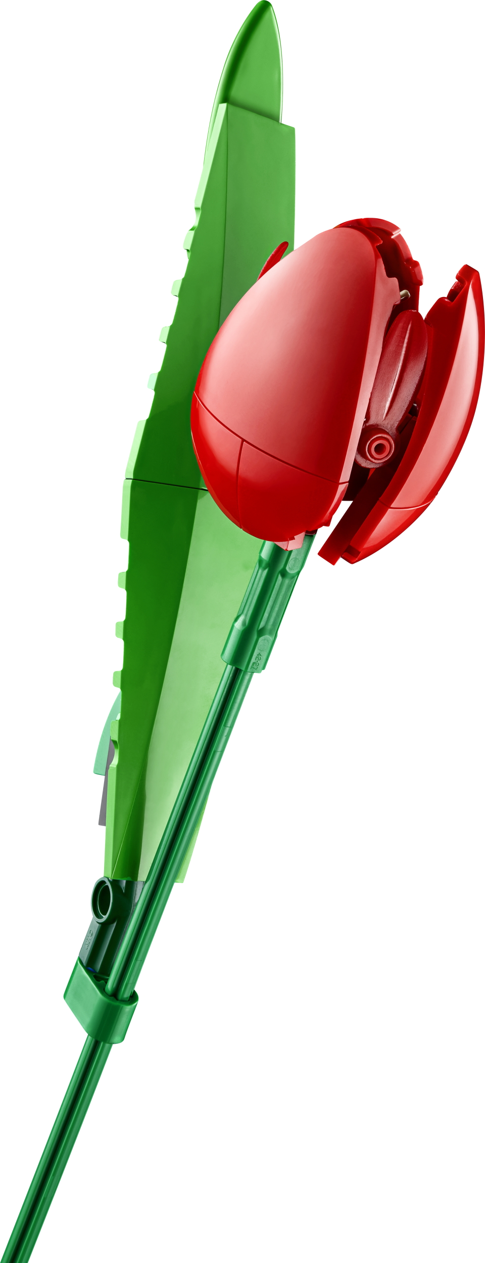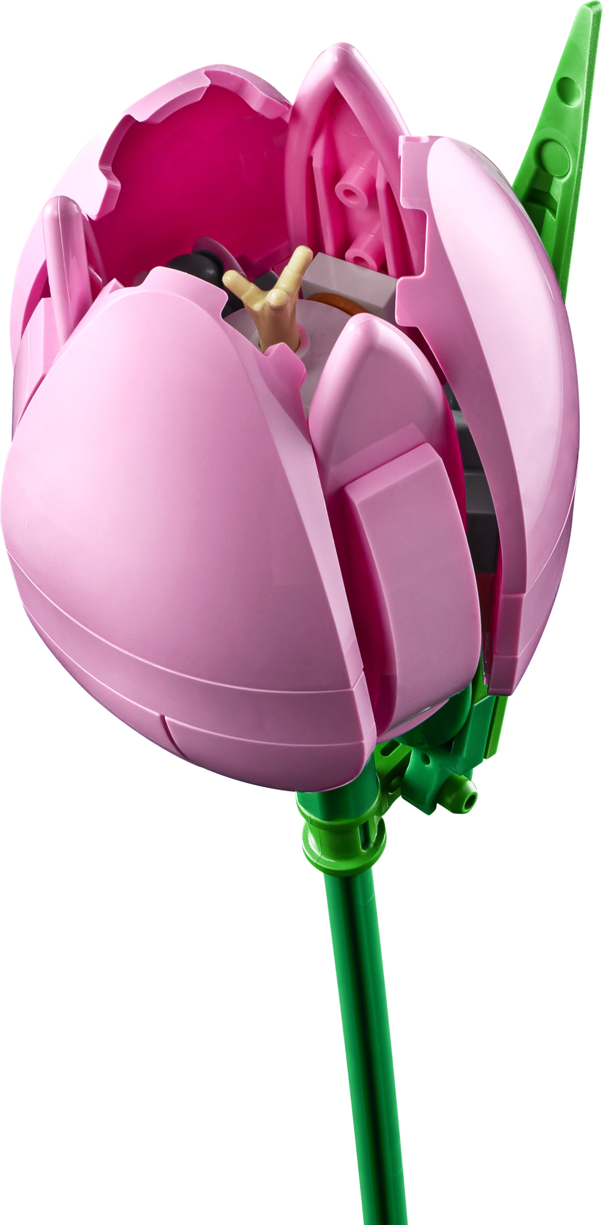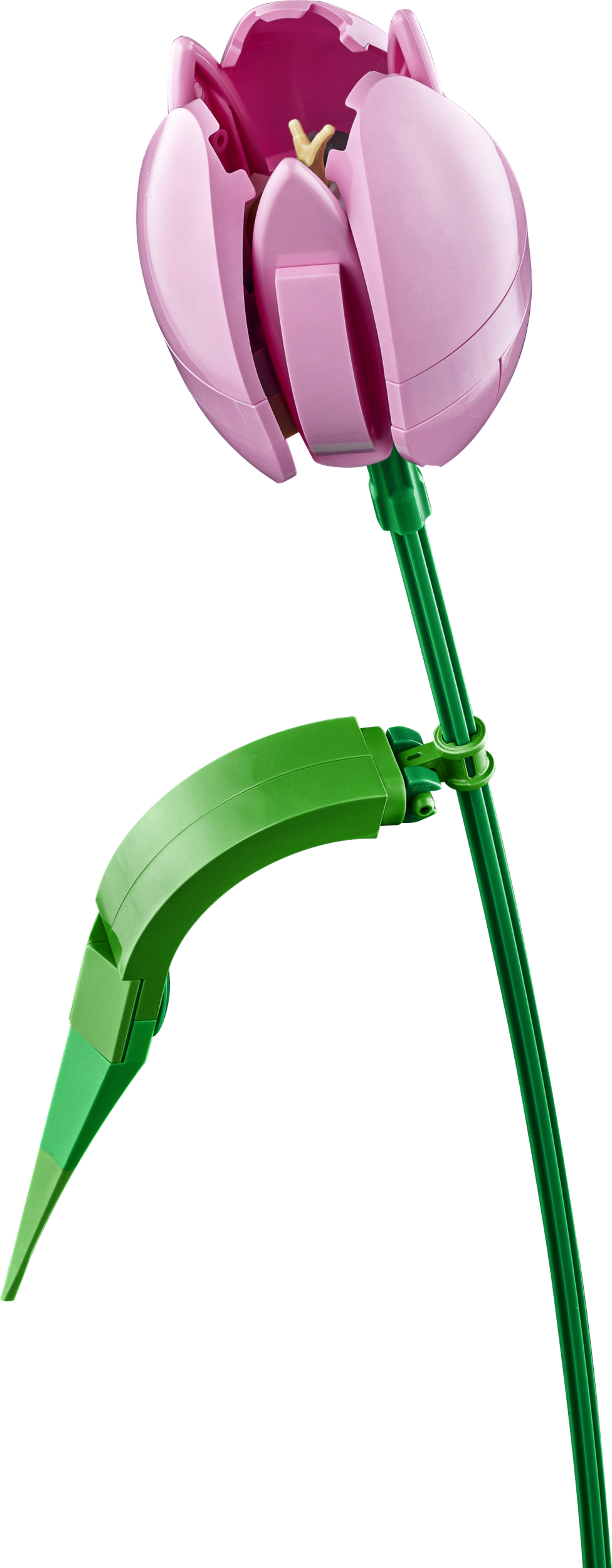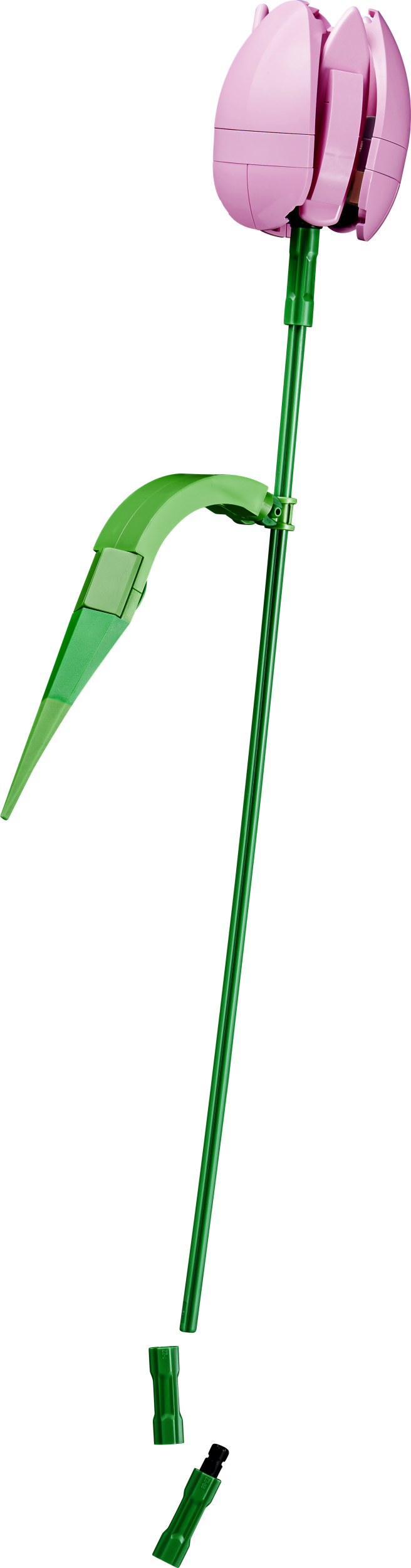 - 5 LEGO® TULPPAANIA – Kimppu sisältää 5 eriväristä tulppaania kukinnan eri vaiheissa: vihreitä silmuja, violetteja nuppuja sekä täyteen kukkaan puhjenneita punaisia, keltaisia, vaaleanpunaisia ja oranssinvärisiä kukkia