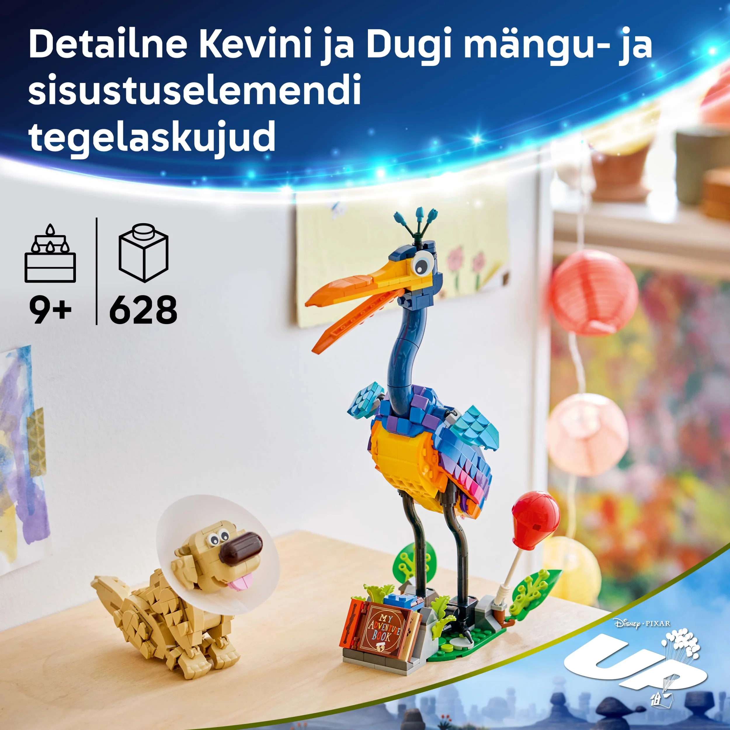 - ELÄINAIHEINEN RAKENNUSLELU – Innosta perheet ja yli 9-vuotiaat lapset ja eläinten ystävät hauskoihin leikkeihin Disneyn ja Pixarin Up – Kohti korkeuksia ‑elokuvan inspiroimalla ja koristeeksi sopivalla leikkisetillä