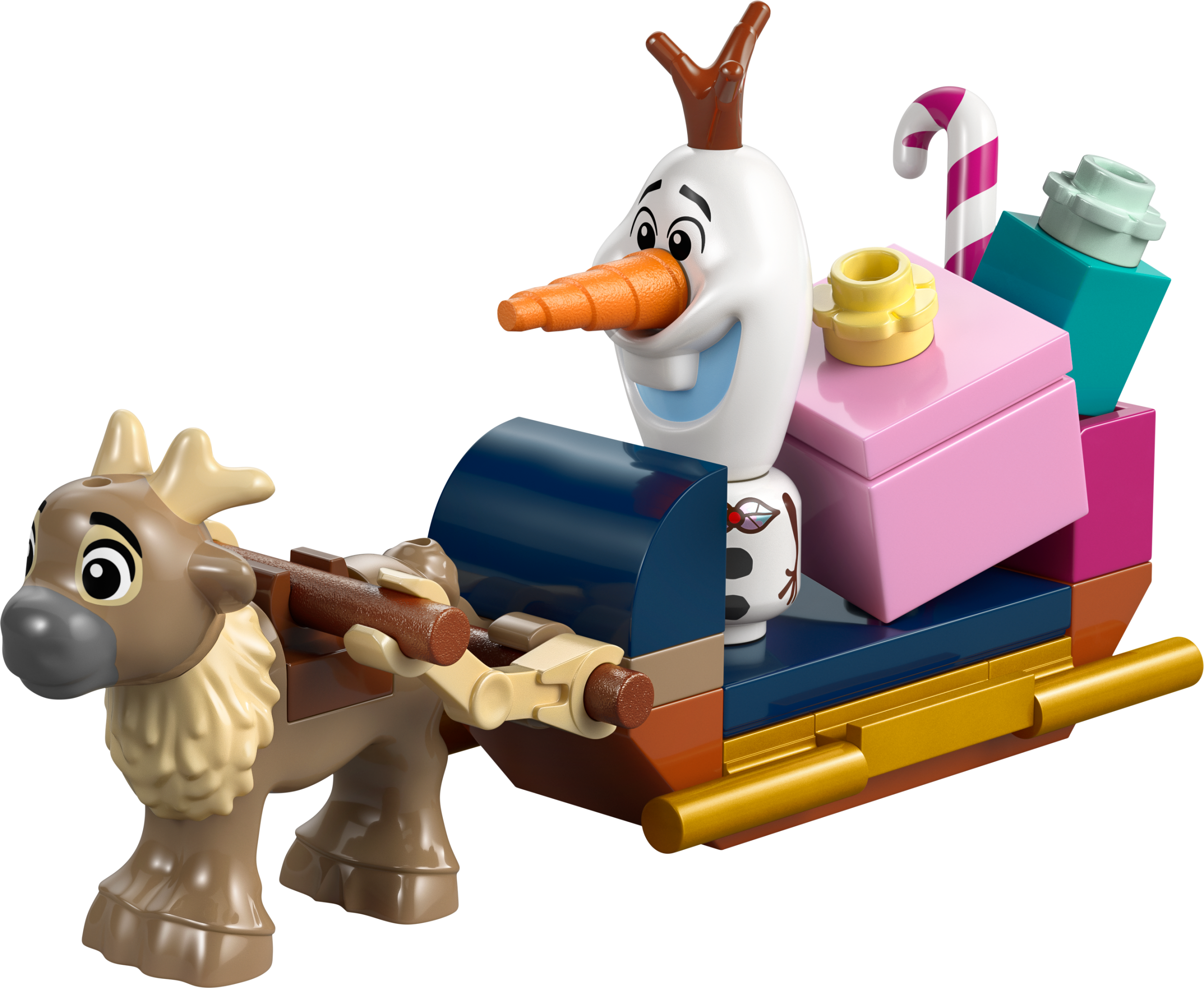 - LEGO® ǀ Disney Frozen hupia – 231-osaisen rakennussetin yllätyksiä ovat esimerkiksi Olafin kelkka (johon Olafin voi kiinnittää), kynttilöiden koristama kranssi, mikrokokoinen kulkunen ja kirje sekä jääpöytä