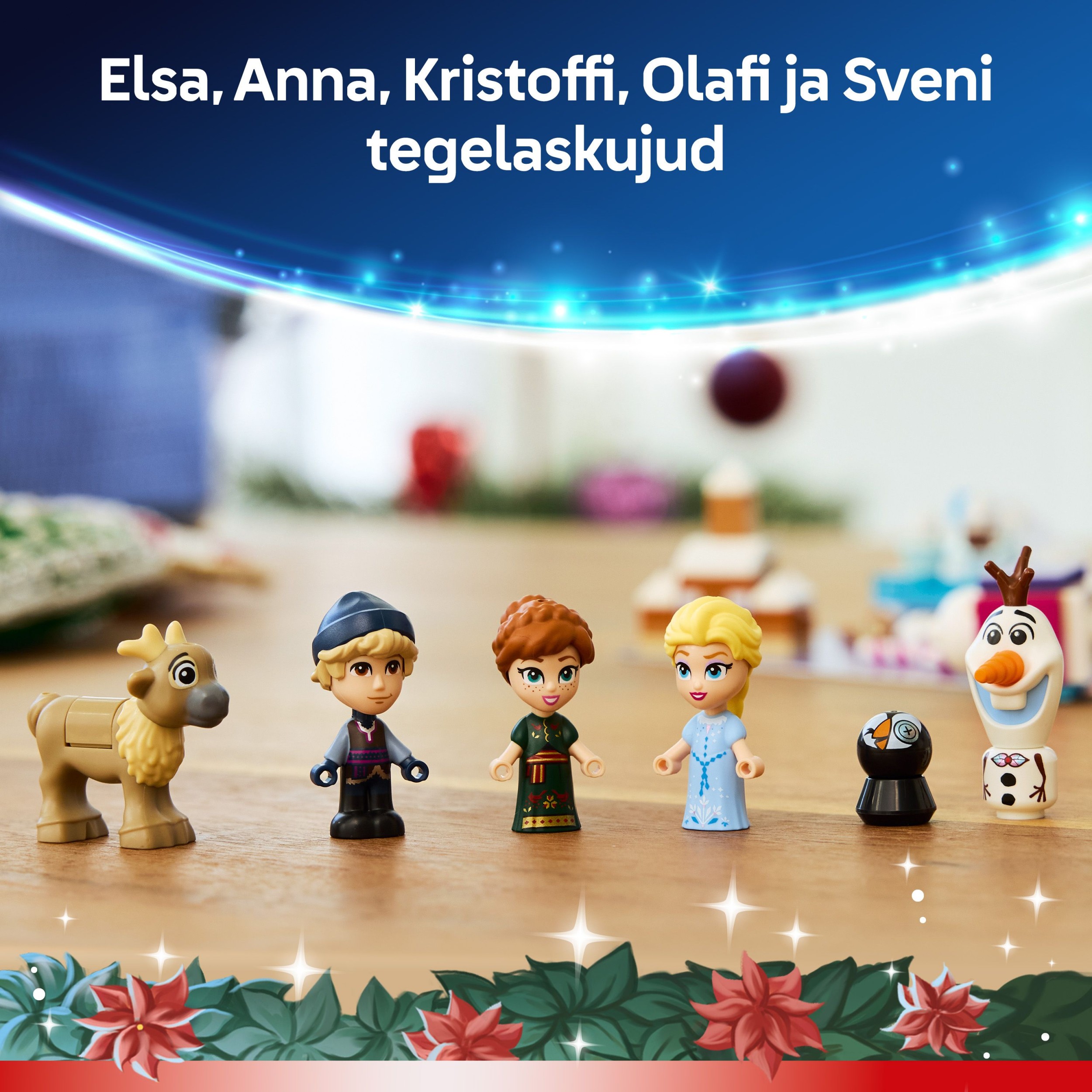 - Disney-hahmoja ja paljon muuta – Joulukalenteri sisältää Elsan, Annan, Kristoffin, Olafin ja Svenin LEGO® ǀ Disney hahmot, 2 LEGO ǀ Disney kissanpentuhahmoa, minikokoisen Arendelin linnan ja jääkristallipuun