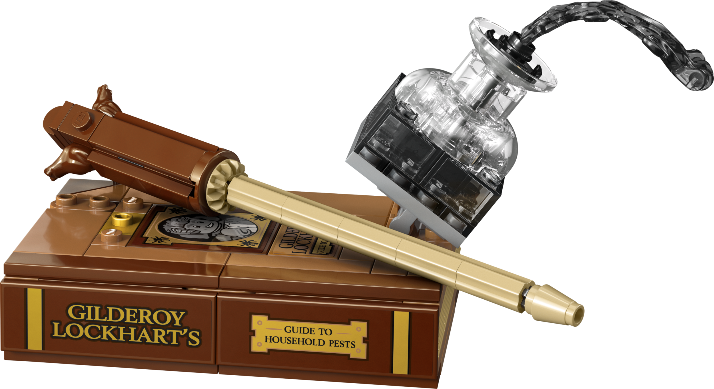 - MAHTAVIA TARVIKKEITA – Laita hahmo esille Gilderoy Lockhartin™ kirjan ja kaatumaisillaan olevan mustepullon palikkaversioiden kera