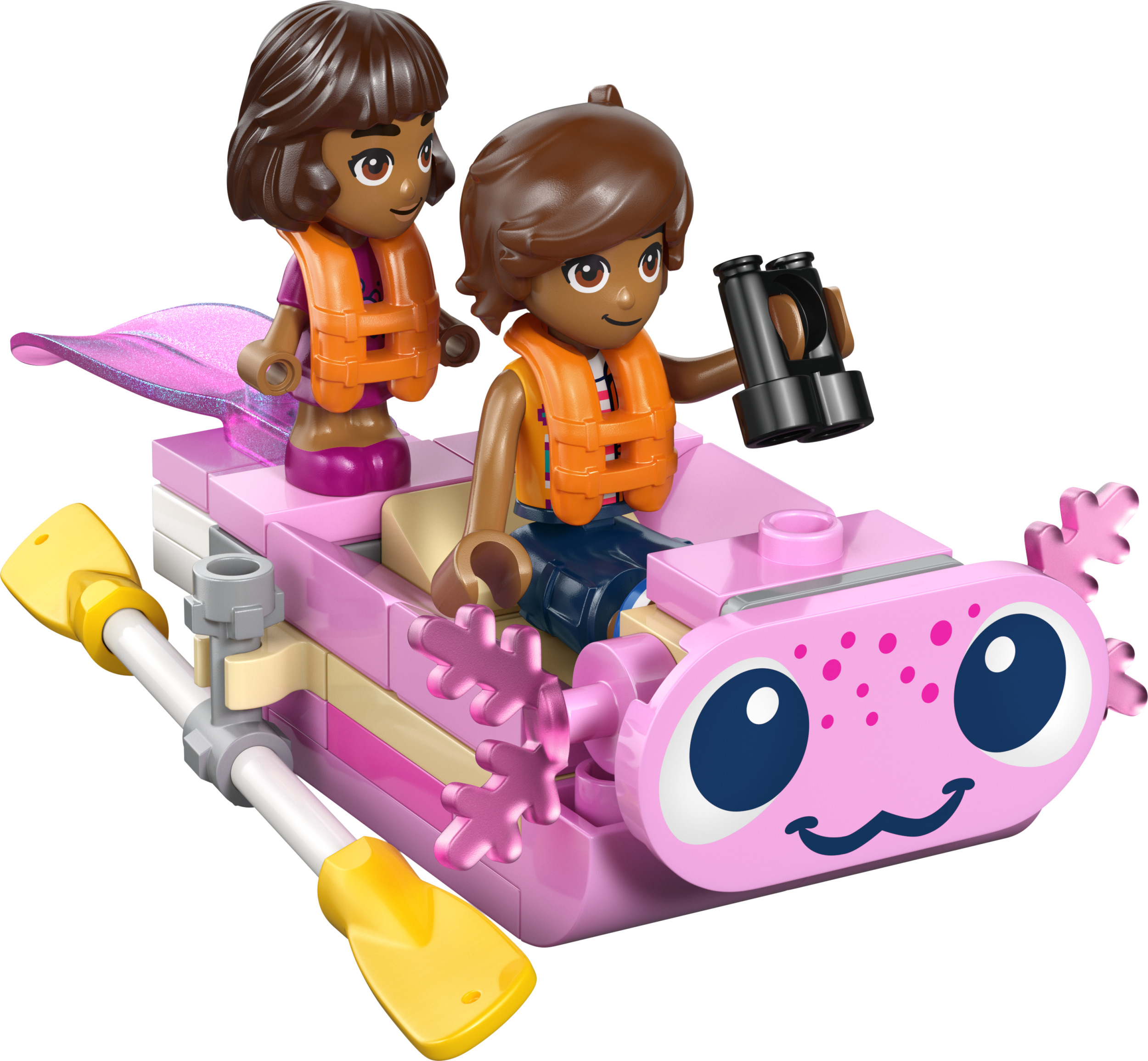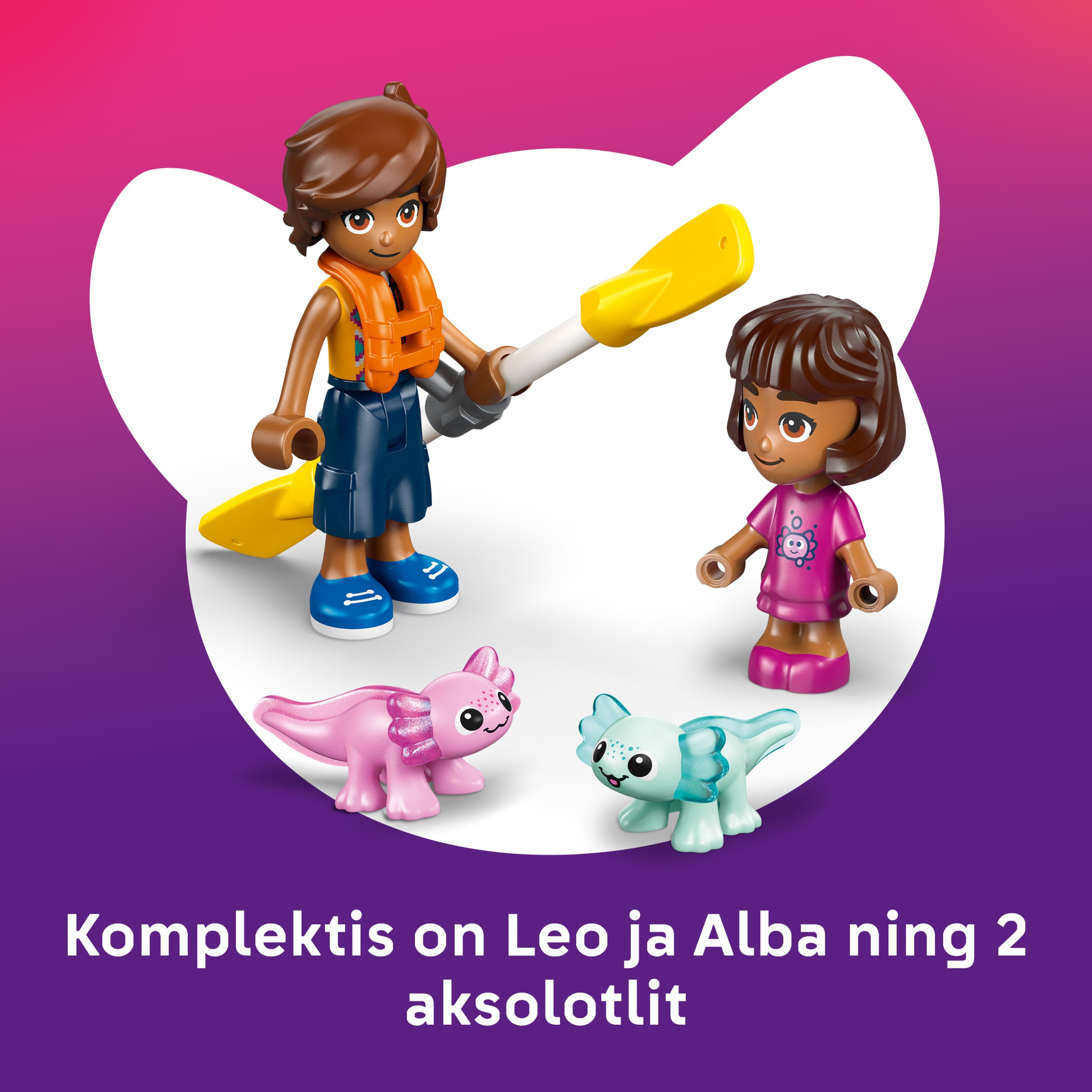 - AKSOLOTLIAIHEINEN RAKENNUSSETTI – LEGO® Friends Aksolotli-seikkailuvene (42681) sisältää minikokoisen veneen, 2 hahmoa ja 2 pientä aksolotlihahmoa, jotka innostavat yli 5-vuotiaat tytöt ja pojat hauskoihin leikkeihin