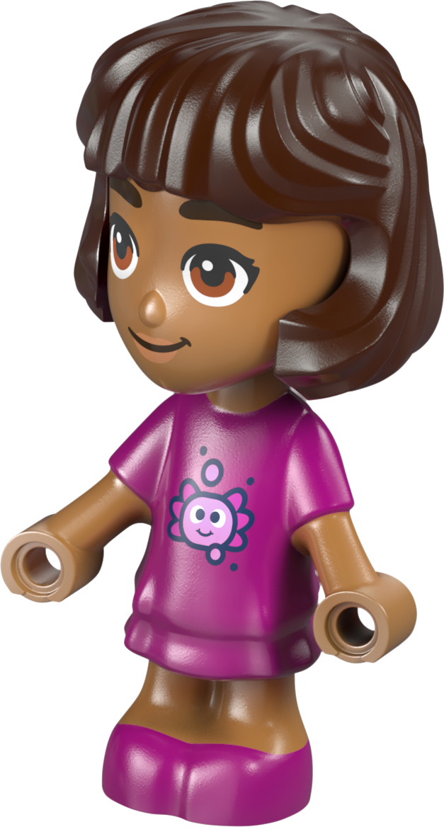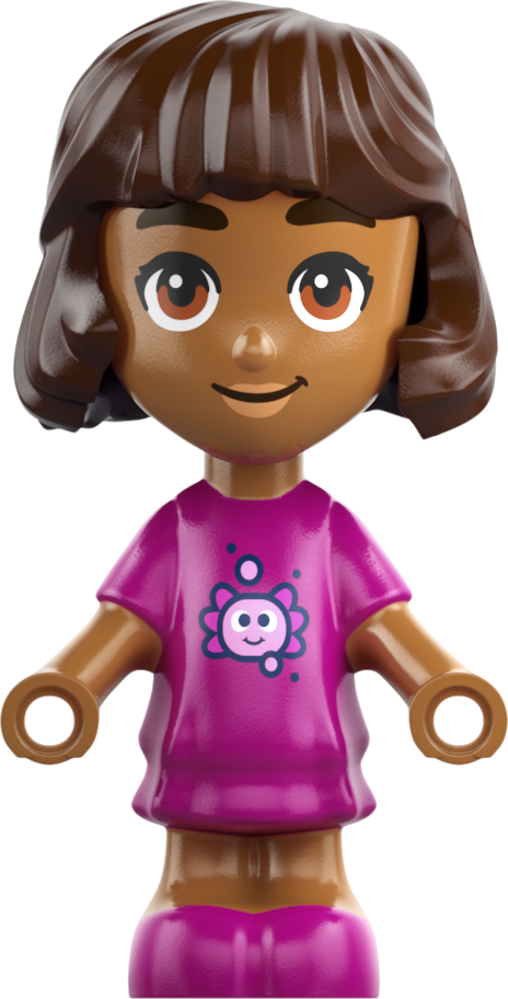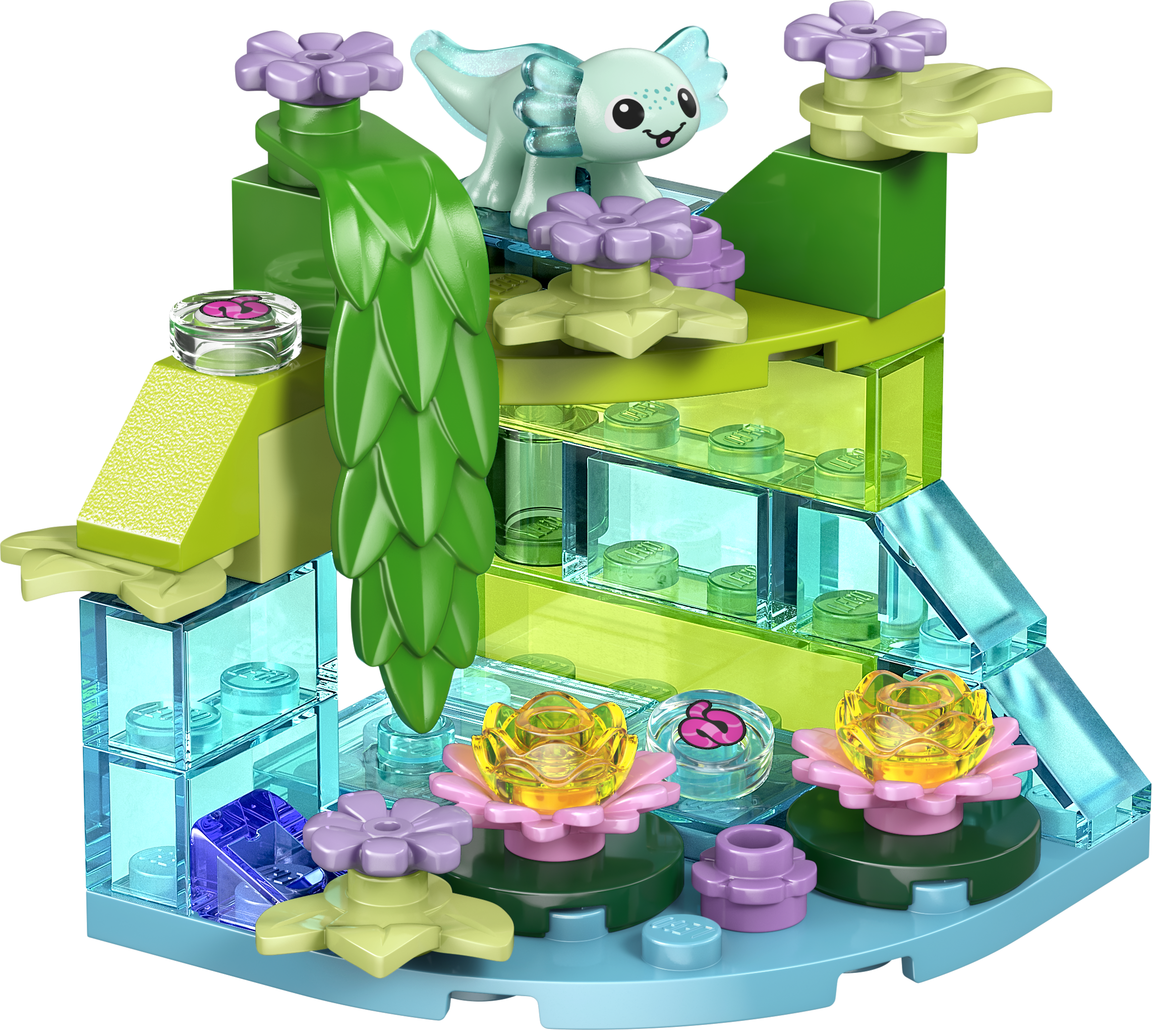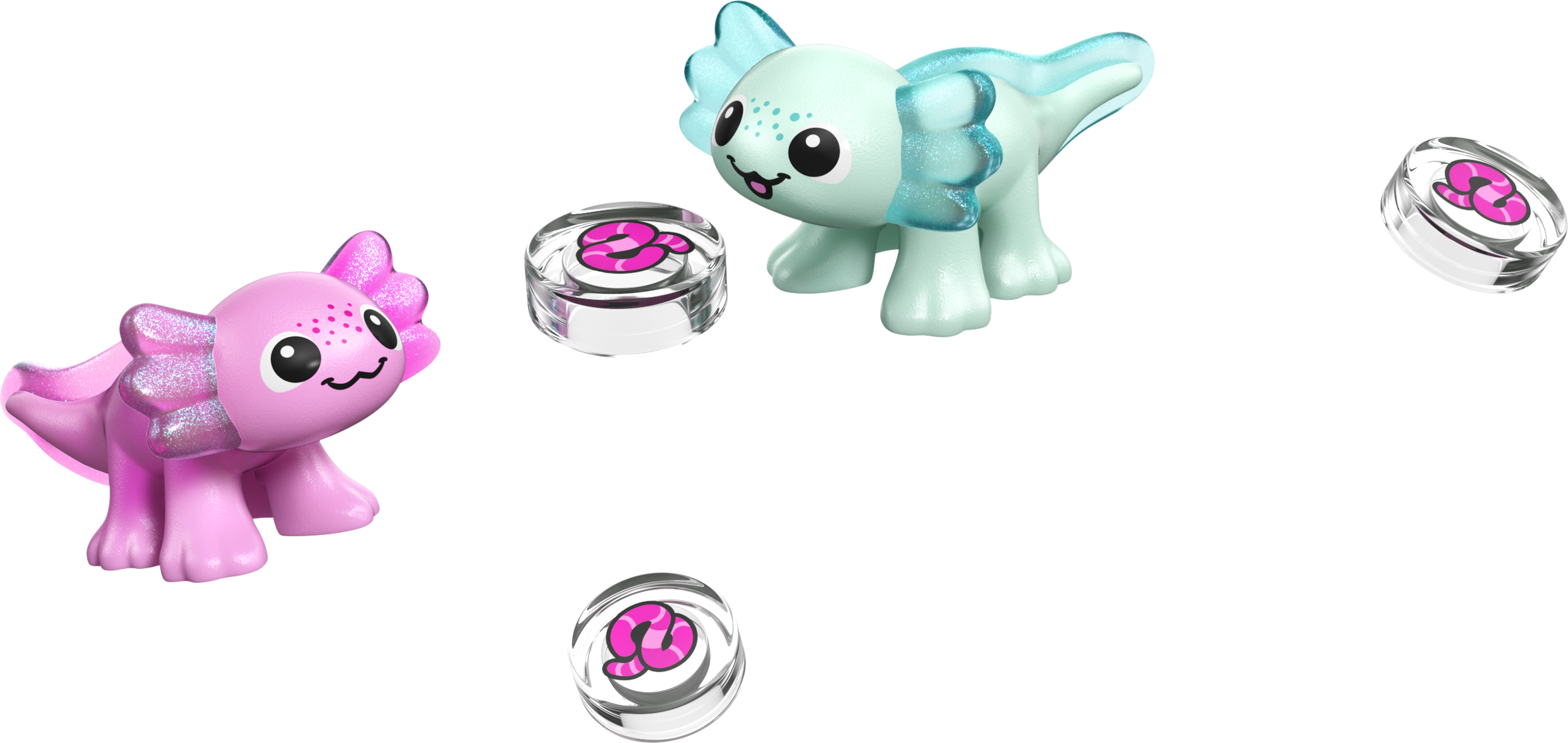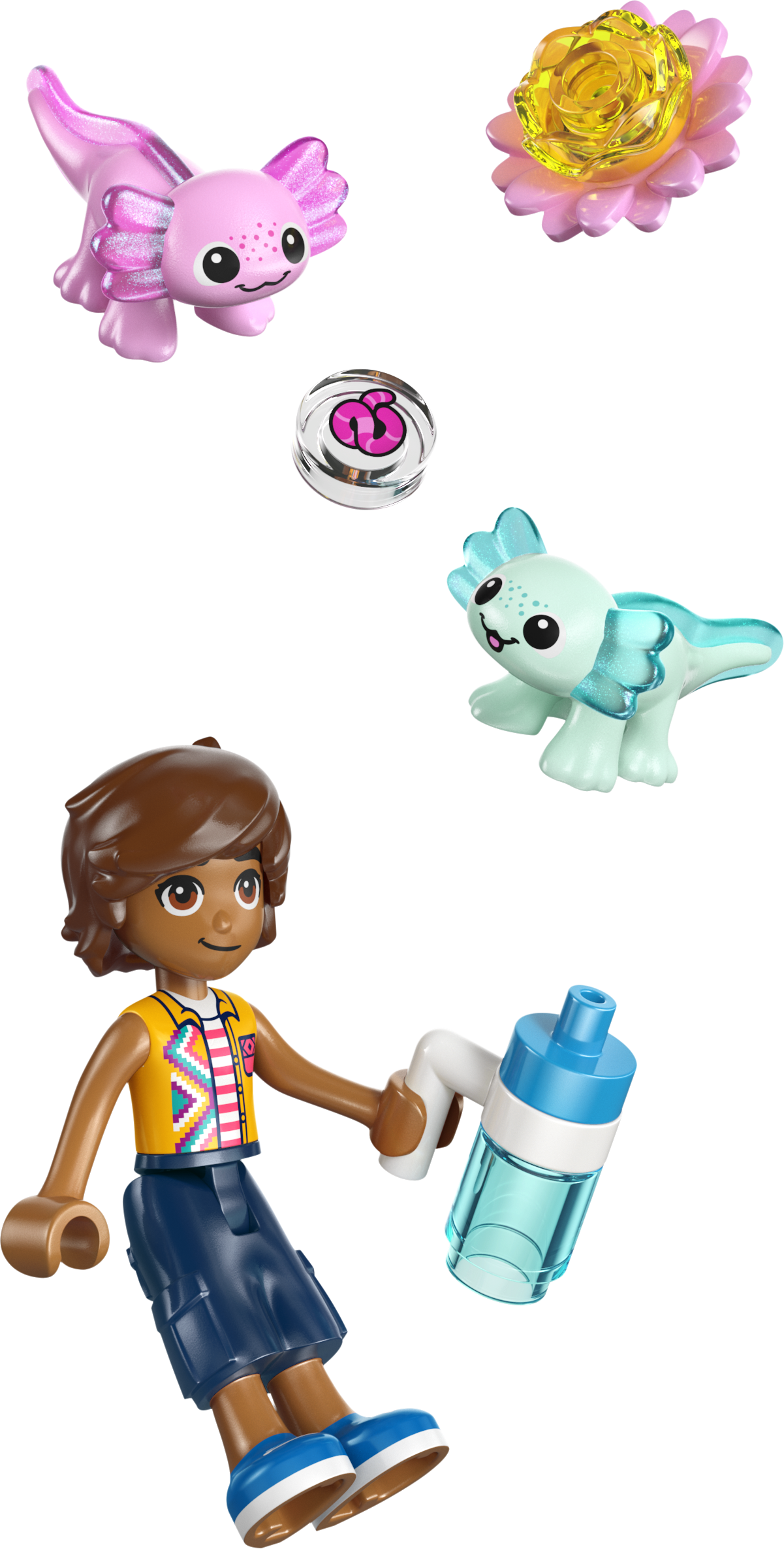 - 2 LEGO® FRIENDS HAHMOA – Setissä on mukana 1 mininukke, Leo, ja 1 mikronukke, Alba, sekä 2 aksolotlihahmoa ja tarvikkeita luovien tarinoiden sytykkeiksi
