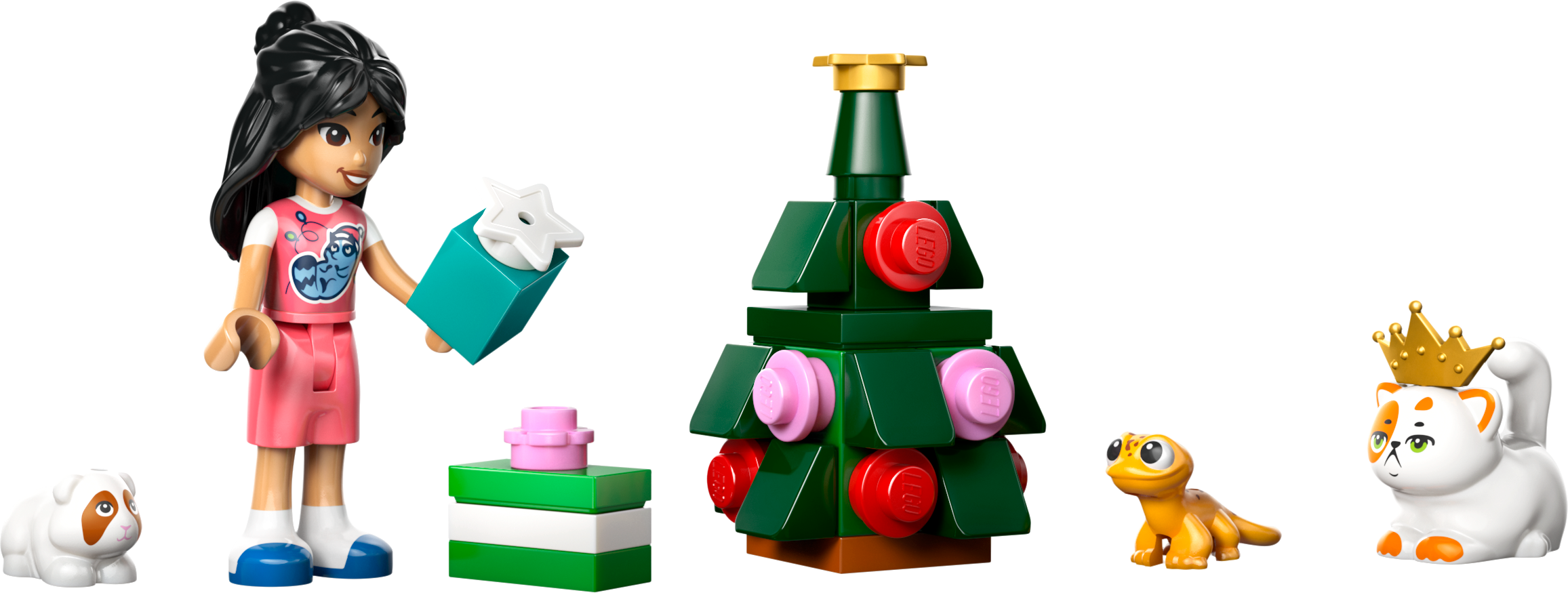 Innosta 6 vuotta täyttäneitä tyttöjä ja poikia jouluisen mukaviin hetkiin, kun lapset avaavat LEGO® Friends Joulukalenteri 2025 (42668) setin luukkuja. Setti sisältää 5 mininukkea, eli Aliyan, Autumnin, Liannin, Novan ja Leon, sekä 5 LEGO eläinhahmoa: 2 koiraa, marsun, gekon ja kissan.