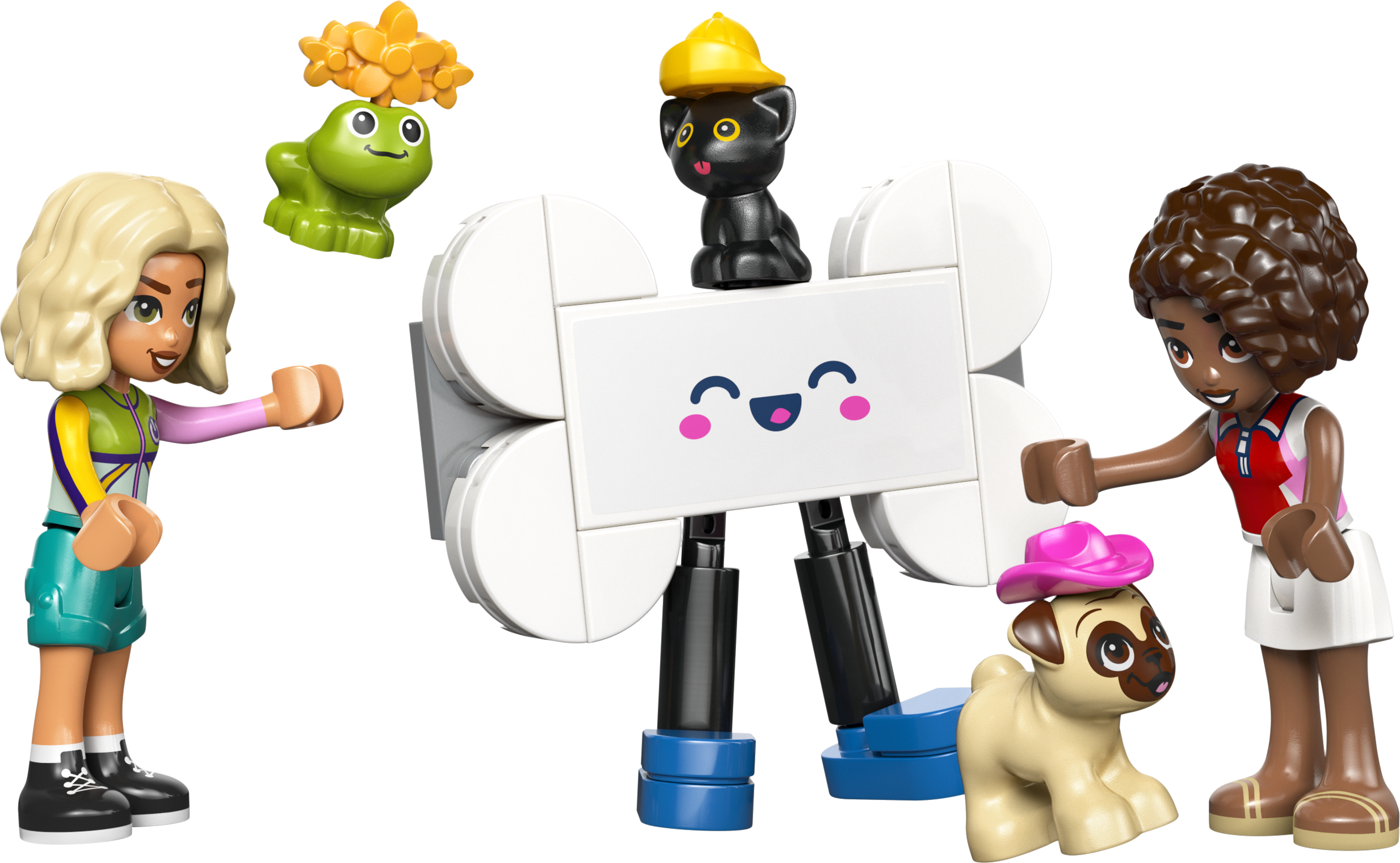 - 2 LEGO® FRIENDS HAHMOA – Novan ja Aliyan mininukkehahmot sekä 3 eläinhahmoa – kissanpentu, koira ja sammakko – innostavat tarinoihin ja mielikuvitusleikkeihin