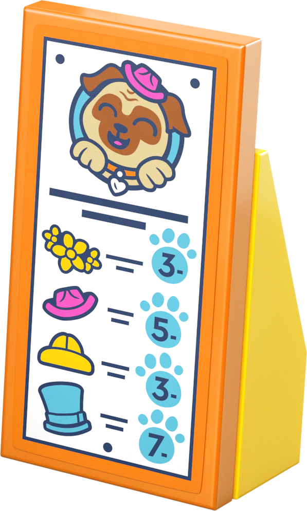 Yksityiskohtainen rakennussetti kannustaa vapaamuotoisiin leikkeihin 2 mininuken, kissanpennun, koiran ja sammakon eläinhahmojen sekä hauskojen lemmikkitarvikkeiden avulla. Setti innostaa hauskoihin hetkiin – tutki mopsin näköistä pakettiautoa ja katso, miten menopelin häntä heiluu auton liikkuessa! Päästä luovuus valloilleen ja auta lemmikkejä kokeilemaan erilaisia hattuja, kuten sadehattua, cowboyhattua, silinteriä ja kukkaseppelettä. Tervehdi luuta esittävää söpöä maskottia ja lastaa sitten pakettiauto lemmikkitarvikkeilla seuraavaa seikkailua varten.