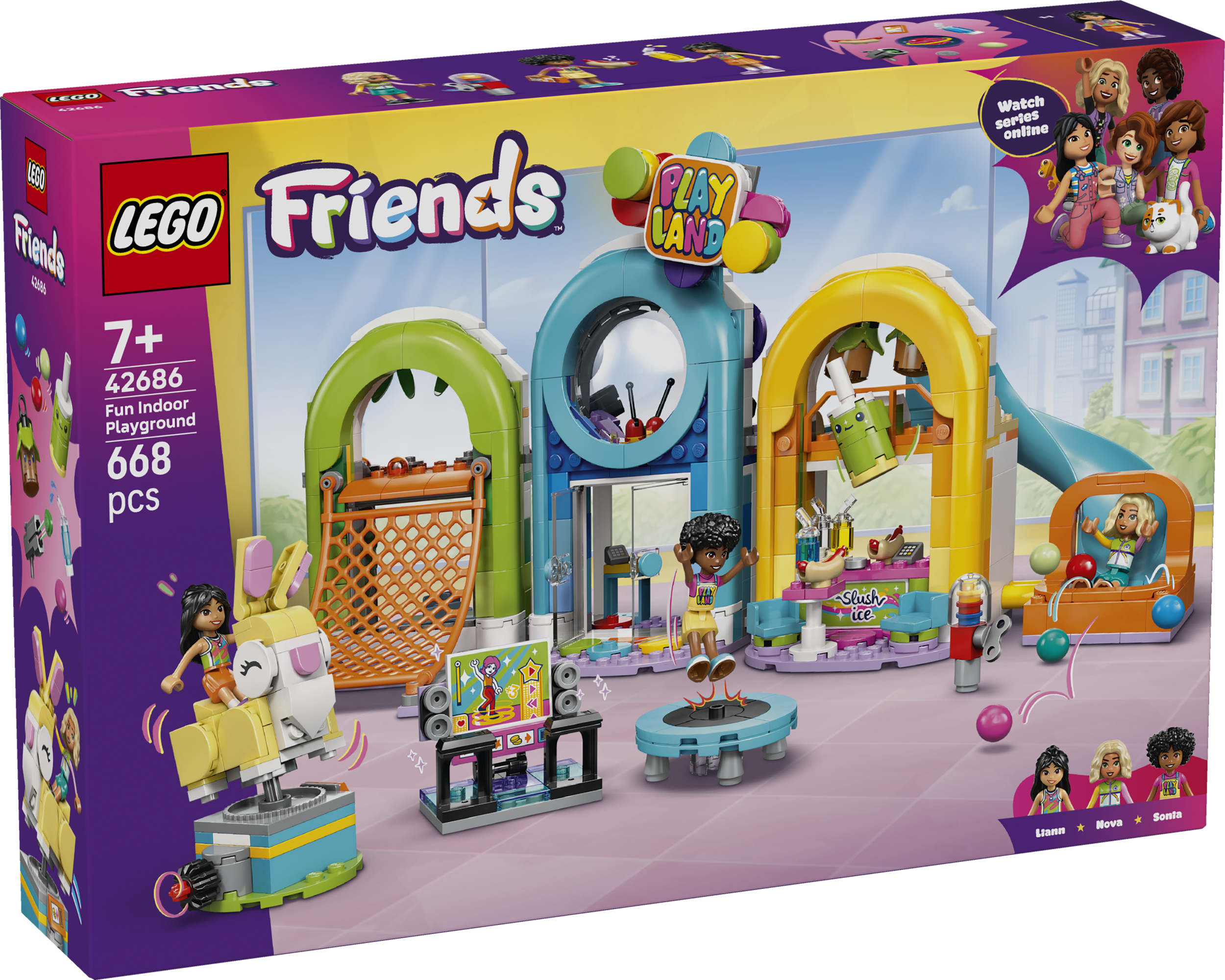 - RAKENNA SISÄLEIKKIPAIKKA – Lasten mielikuvitus lähtee lentoon heidän tutkiessaan LEGO® Friends Hauska sisäleikkipaikka (42686) settiä, joka sopii yli 7-vuotiaille tytöille ja pojille, mukana myös 3 mininukkea