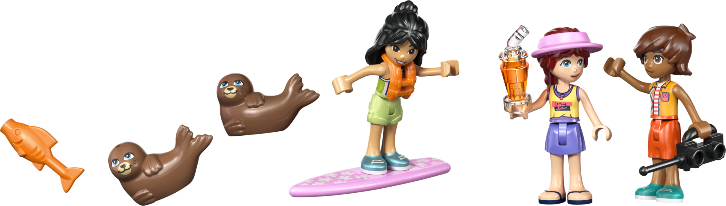 - 3 LEGO® FRIENDS HAHMOA – LEGO® Friends Rantahuvila ja hylkeet (42699) setti sisältää Leon, Liannin ja Paisleyn mininukkehahmot sekä 2 eläinhahmoa, jotka innostavat mielikuvitusleikkeihin