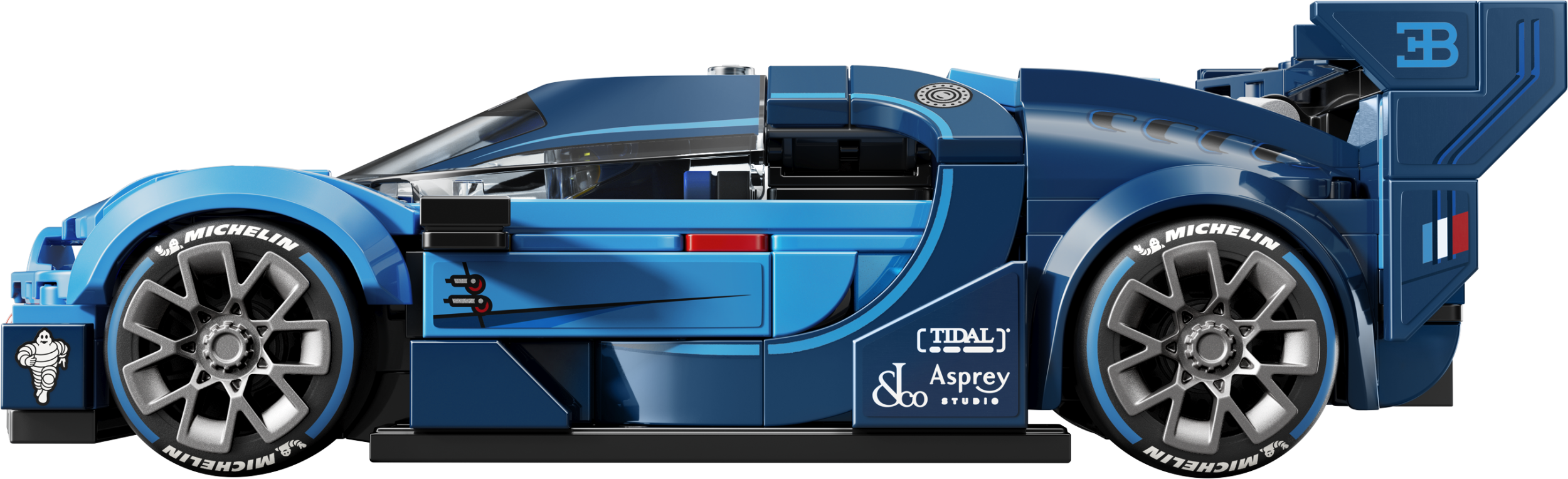 Bugatti-pienoismallissa on Bugattin vuonna 2015 julkaistuun Gran Turismo ‑peliin suunnittelemasta autosta tuttuja yksityiskohtia, kuten hevosenkengän muotoinen etusäleikkö, takasiipi, tunnusomaiset ajovalot, hainevää muistuttava antenni ja leveät renkaat, joissa lukee ”Michelin”. Autolelu sisältää myös Bugatti-asuun sonnustautuneen minihahmon, jonka voi laittaa istumaan ohjaamoon kisaleikkien pyörteissä.