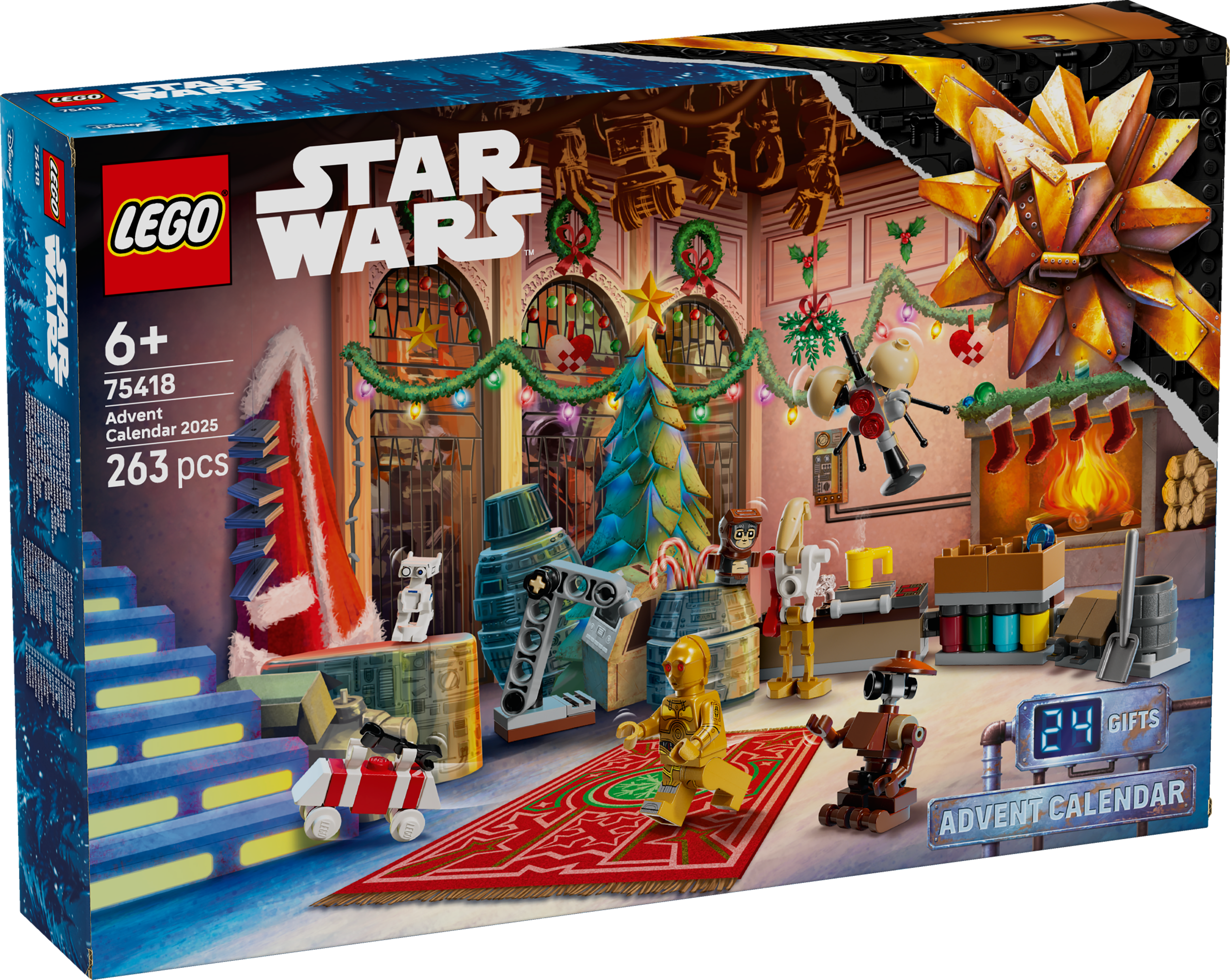 - Vuoden 2025 LEGO® Star Wars™ Joulukalenteri lahjaksi lapsille – Kalenterin luukuista paljastuu joka päivä uusi rakennelma, joten lapset voivat hypätä droidiseppä Babu Frikin saappaisiin ja loihtia ikioman droidipajan joulua odotellessa