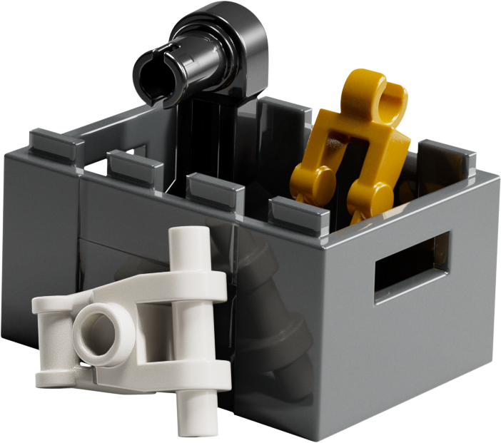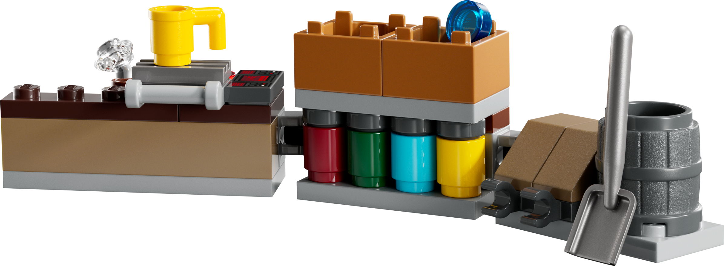 - 9 minirakennelmaa – Mukana nikkarointipöytä, tuoli, työkaluteline, hyllyjä, laatikollinen droidiosia, nosturi ja kauha droidisepän pajan rakentamiseen, Jawan rakennettava menopeli ja joulukuusi