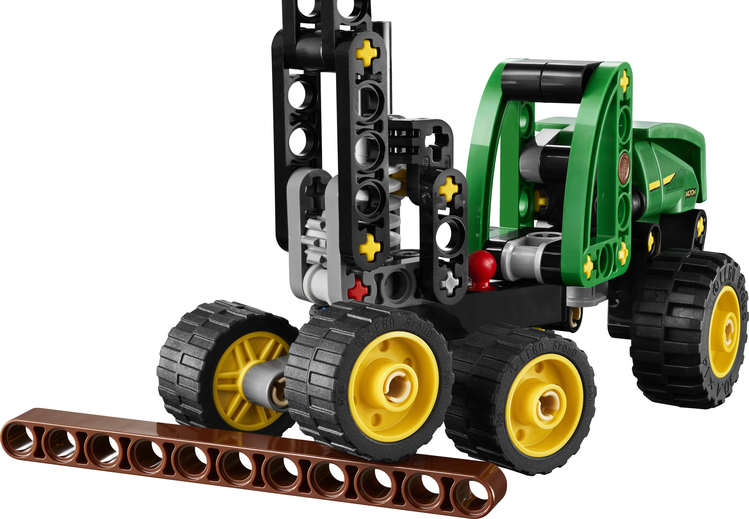 LEGO® Technic Pyörillä varustettu John Deere 1470H ‑harvesteri (42218) kuljettaa yli 7-vuotiaat pojat, tytöt ja lapset seikkailuihin metsän siimeksessä. Työkoneessa on monia yksityiskohtia nuorten John Deere ‑fanien iloksi. Ajoneuvon nosturia voi kääntää 180 astetta. Kun on aika ryhtyä töihin, nosta ja laske tukki avaamalla ja sulkemalla koura. Lapset voivat laittaa teknisaiheisen lelun jousituksen ja runko-ohjauksen todelliseen testiin. Hauskan lelun vihreän, mustan ja keltaisen sävyt heijastavat tuttua John Deere ‑värimaailmaa. Setti innostaa lapsia leikkien pariin yhä uudelleen.