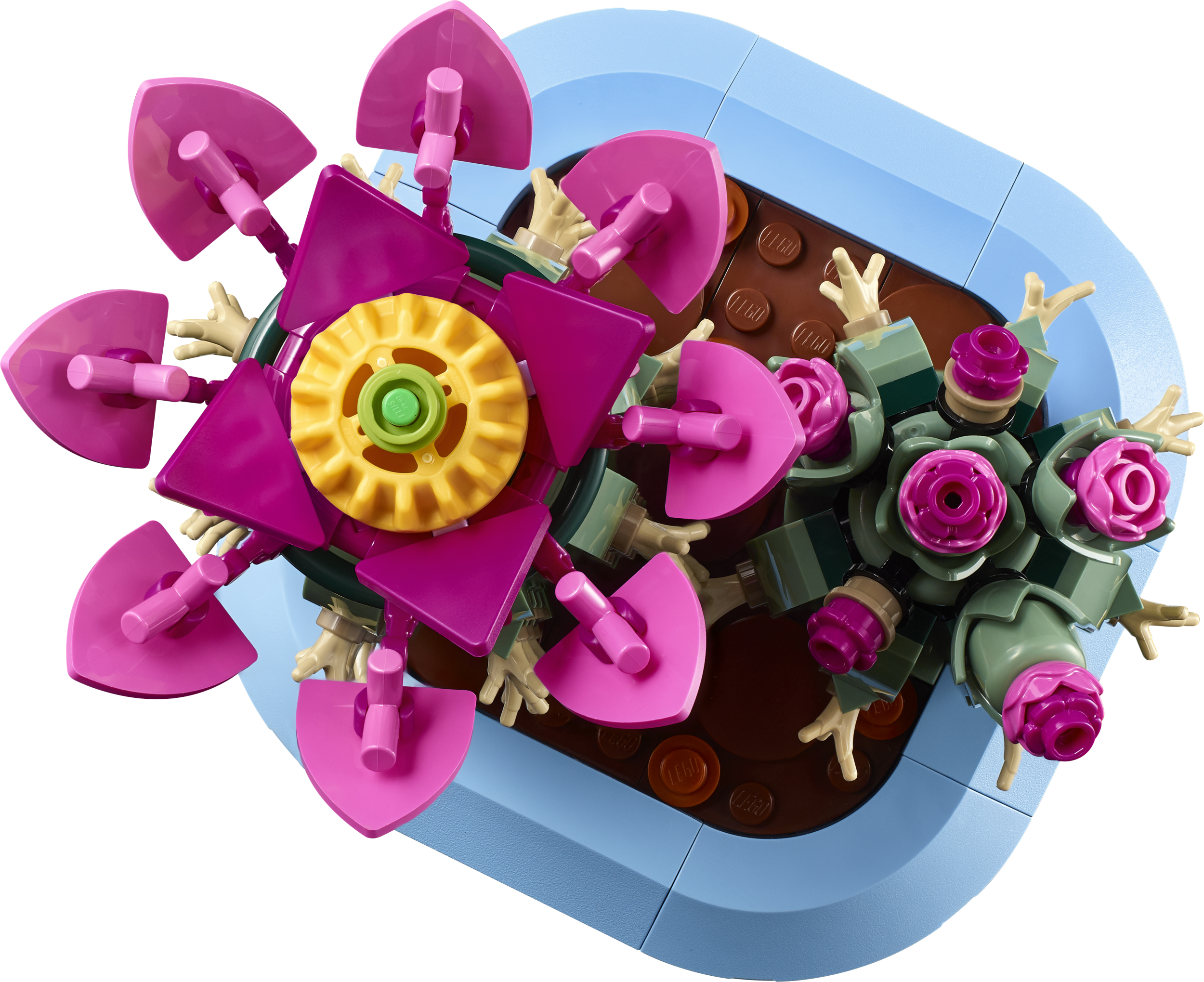 - ROZĀ LEGO® ZIEDI. Lielākajam LEGO kaktusam ir rozā zieds ar dzeltenu centru, savukārt mazajam kaktusam ir nelieli rozā pumpuri