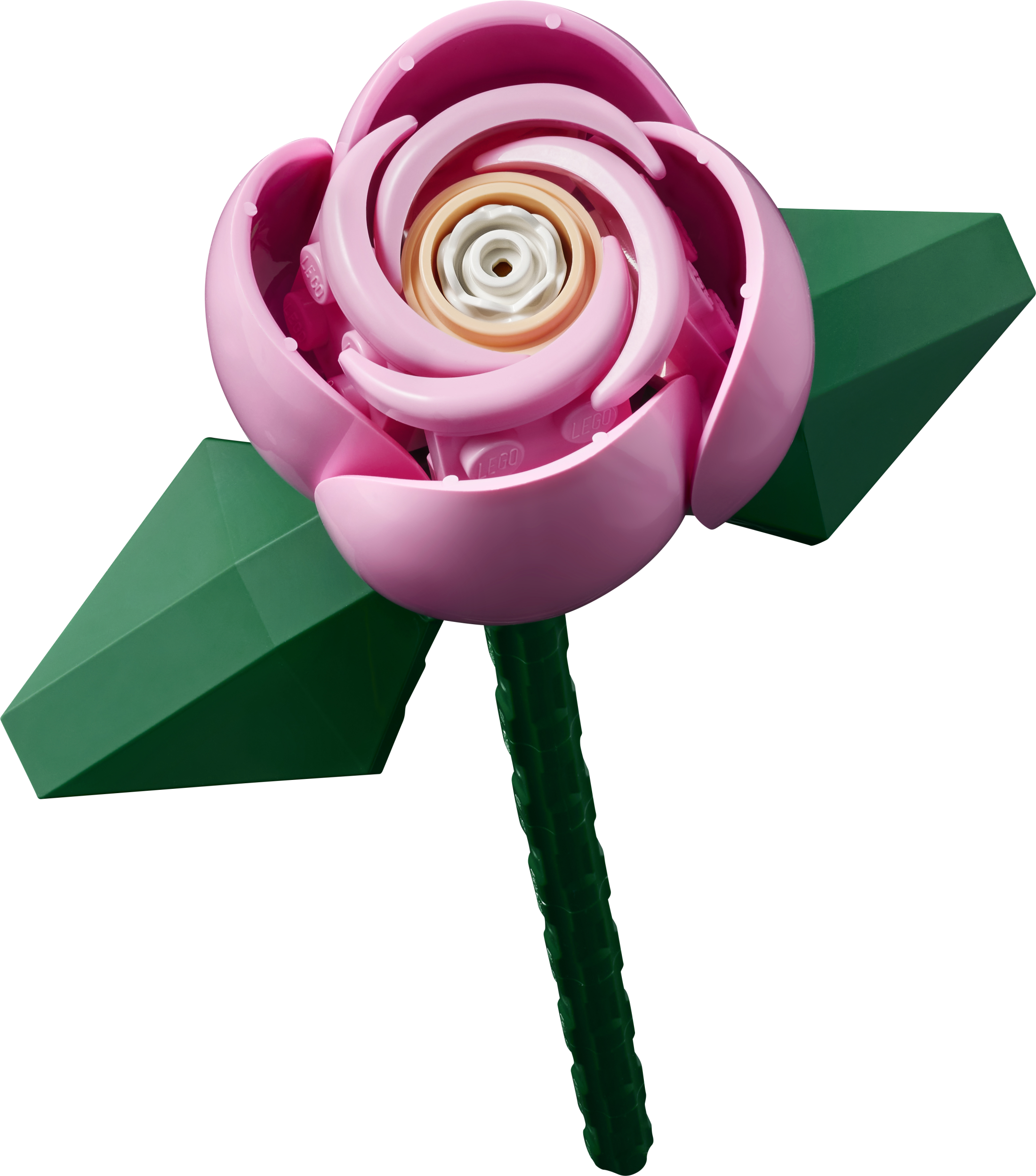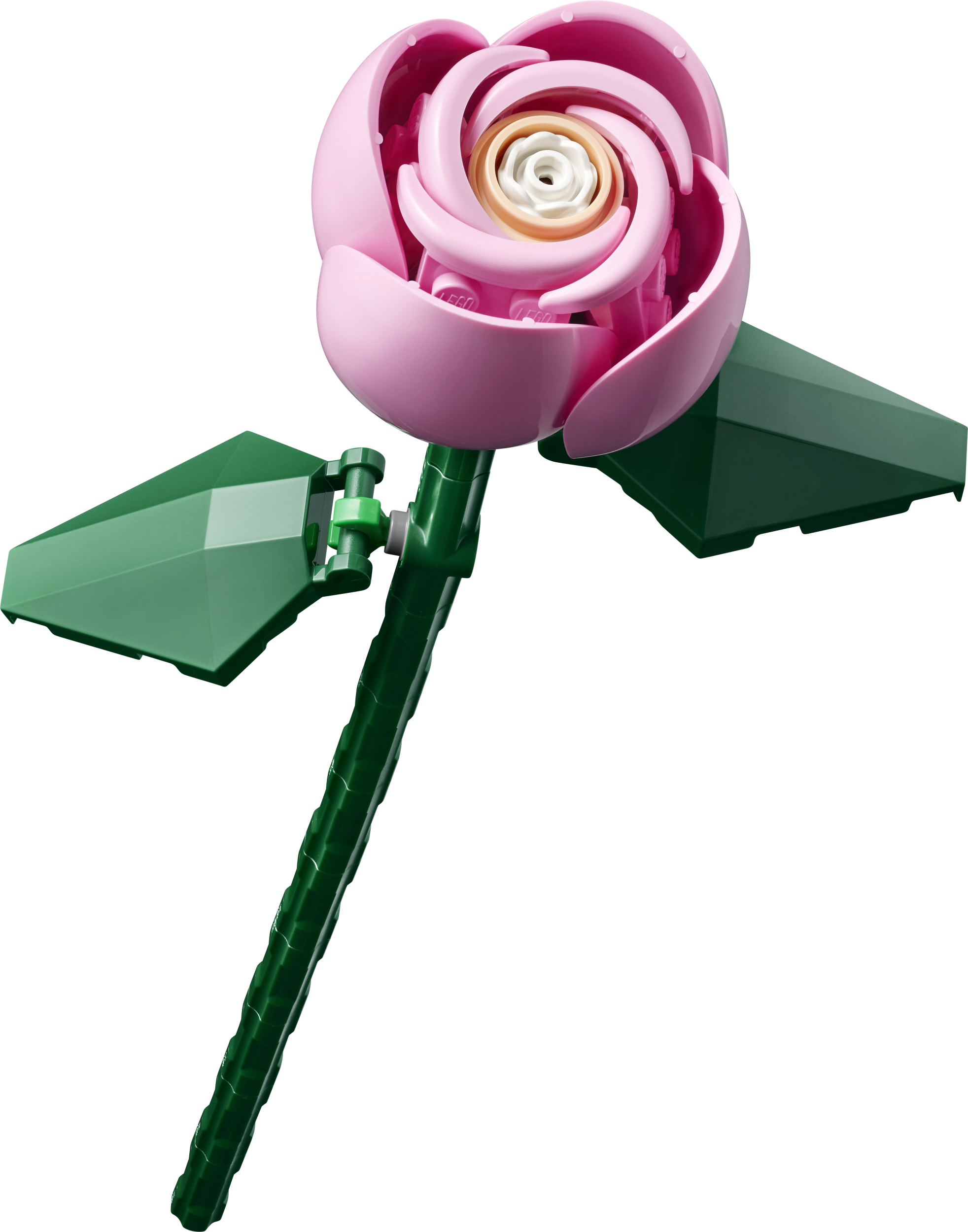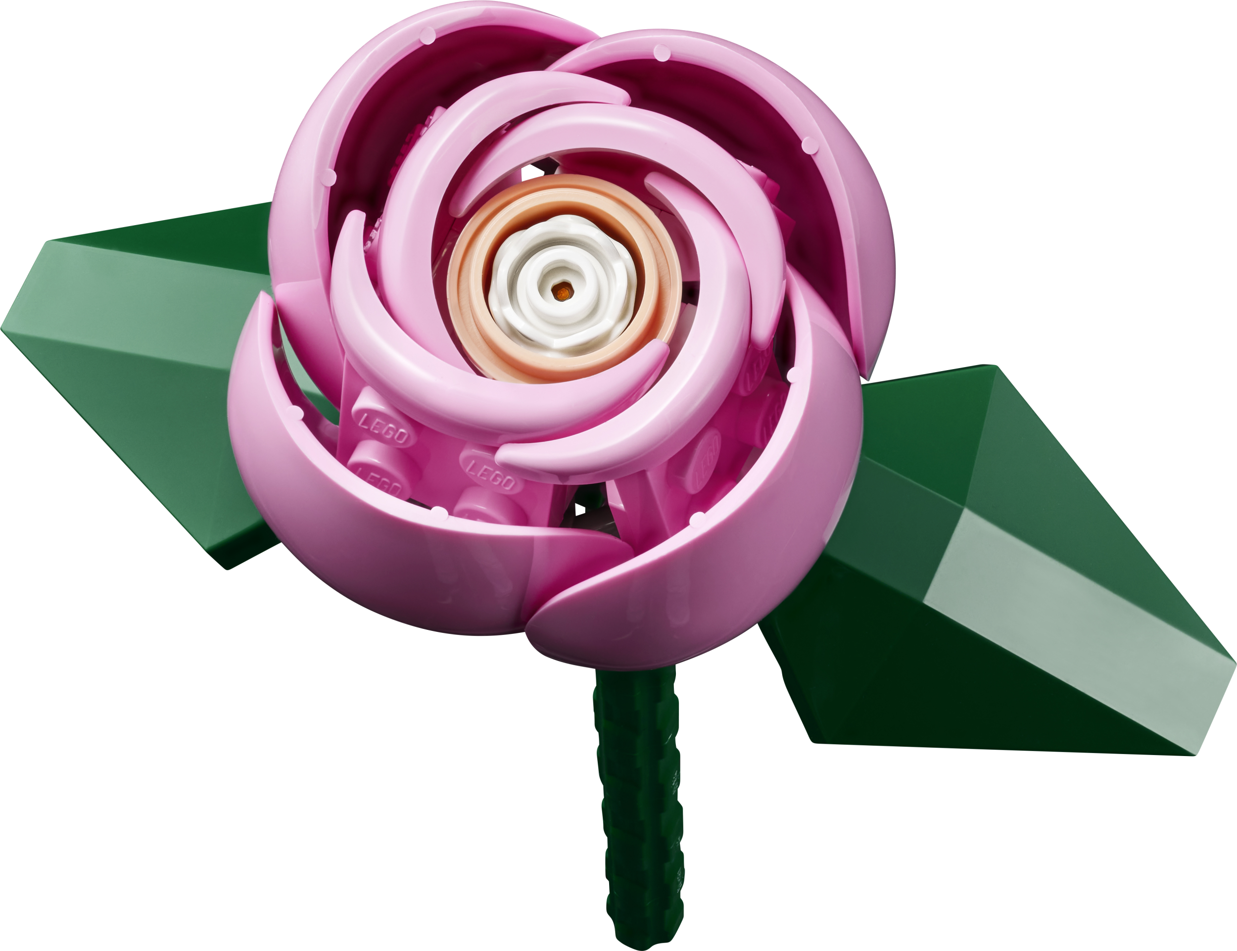 - LEGO® ziedi. Komplektā ir četras rozes pilnā plaukumā, četras plaukstošas rozes un četri rožu pumpuri, kā arī četri ģipsenes zariņi ar baltiem ziediem