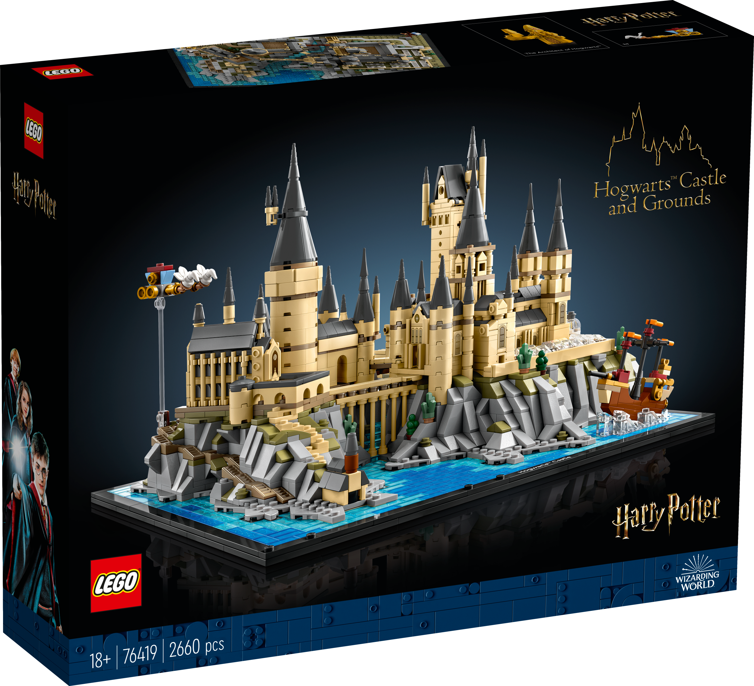 Notver maģisko Cūkkārpas pils un teritorijas gaisotni ar šo brīnumaini detalizēto, uzbūvējamo LEGO® Harry Potter™ apskates modeli (76419). Izdzīvo atmiņā paliekošās “Harija Potera” ainas, būvējot Galveno torni, Astronomijas torni, Lielo zāli un māju uz ūdens, pagalmus, siltumnīcas, taciņas un tilus, kā arī akmeņaino ainavu un Melno ezeru. Atveido Noslēpumu kambari, Spārnoto atslēgu telpu, Mikstūru klasi un šaha galda kambari – katra no telpām ir papildināta ar uzreiz atpazīstamām interjera detaļām.