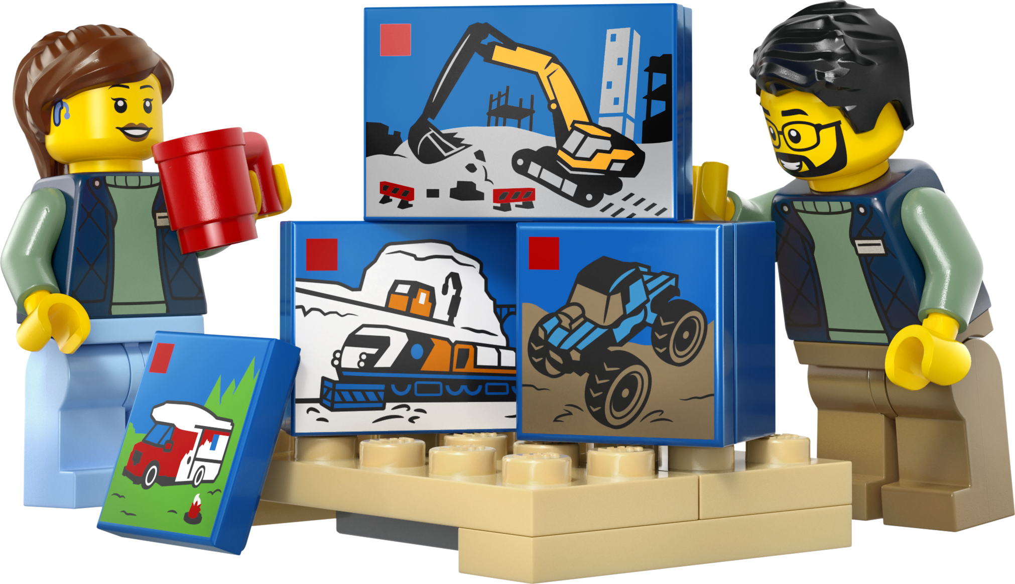 - LEGO® MINIFIGŪRU PIEDERUMI. Iekļauti aksesuāri izlikšanās rotaļām, tostarp preču ratiņi, palete, tase un četras nelielas LEGO rotaļlietu kastes