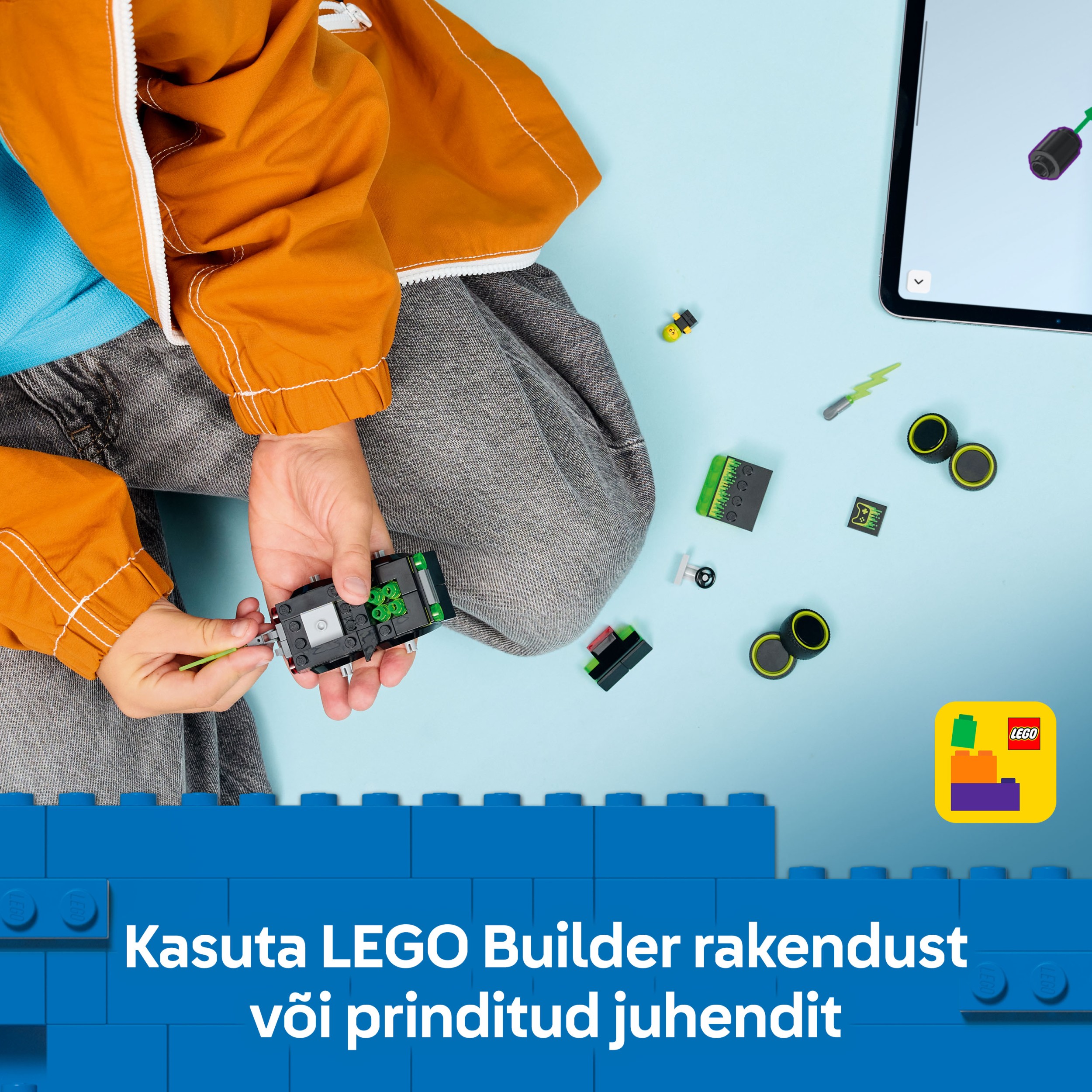 Šim LEGO® City Braucamie – Spēļu sacīkšu auto rotaļlietu komplektam ir intuitīvas būvēšanas instrukcijas lietotnē LEGO Builder, kur bērni var tuvināt un grozīt modeļus trīs dimensijās, vienlaikus saglabājot savu progresu būvēšanas laikā. Komplektā ir 64 detaļas.