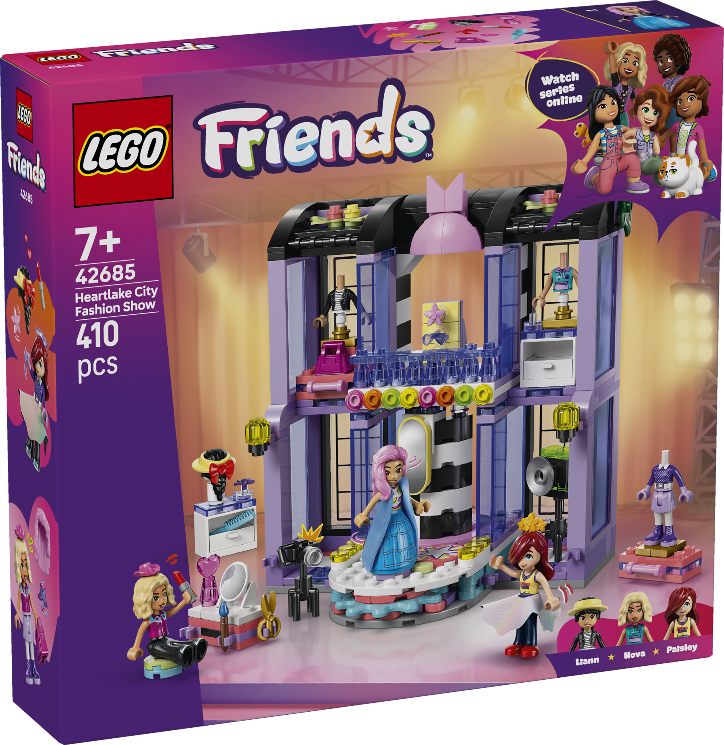 Iedvesmo mazos modes dizainerus no 7 gadu vecuma uzburt savas maģiskās modes skates ar LEGO® Friends Hārtleikas pilsētas modes skati (42685). Meitenes un zēni var baudīt neskaitāmas rotaļas, saskaņojot tērpus, izvēloties aksesuārus un palīdzot tēliem uzvest modes skati.