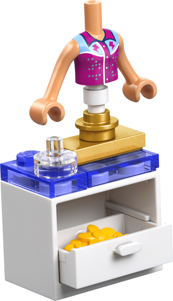 Šis komplekts ir lieliska dāvana meitenēm un zēniem, kam patīk ar apģērbiem un modi saistītas rotaļlietas. Bērni var izbaudīt intuitīvu būvēšanas pieredzi ar lietotni LEGO Builder, kurā var tuvināt un grozīt modeļus ar 3D instrukcijām, vienlaikus sekojot līdzi progresam – tas viss lietotnē. Komplektā ir 410 detaļas.