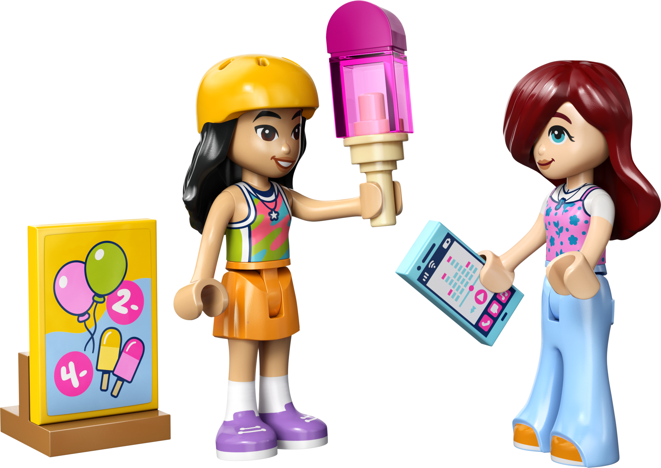 - 2 LEGO® FRIENDS PERSONĀŽI. Šajā aizraujošajā rotaļlietu komplektā meitenēm un zēniem ir Liannas un Peislijas minilellītes un mīlīgs talismans saldējuma tērpā, kas iedvesmo daudziem stāstiem