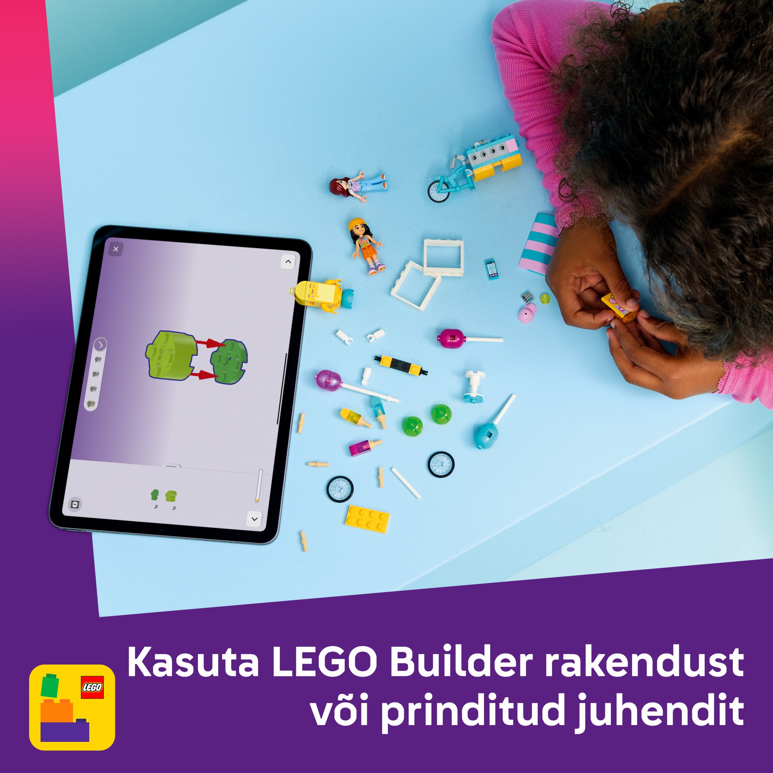 - TIEŠSAISTES ŠOVS. Atklāj vairāk radošu rotaļu ideju ar citiem komplektiem (jāiegādājas atsevišķi) un tiešsaistes šovu LEGO® Friends: The Next Chapter, kur bērni var iepazīt Hārtleikas pilsētas varoņus