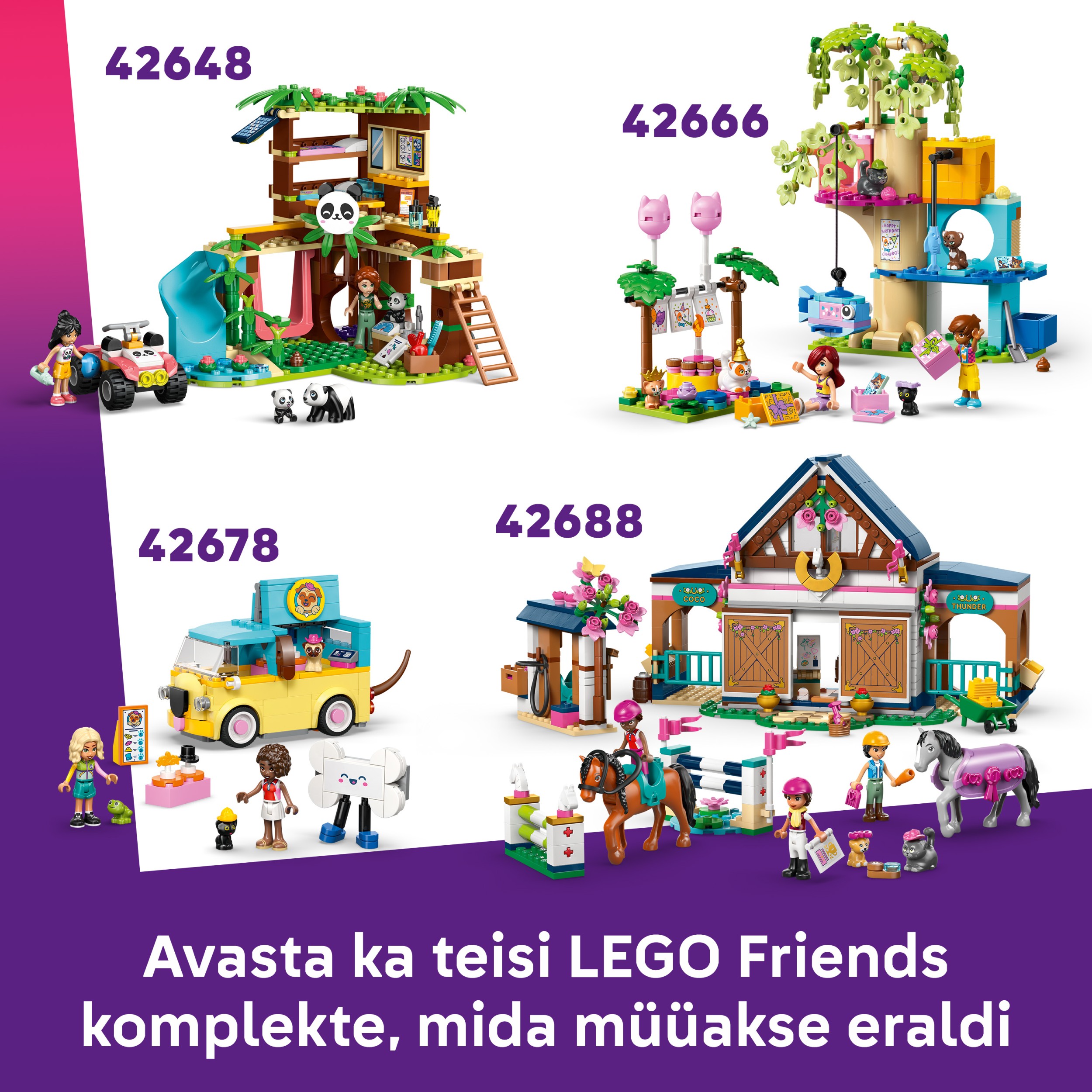 - TIEŠSAISTES ŠOVS. Atklāj vairāk radošu rotaļu ideju ar citiem komplektiem (jāiegādājas atsevišķi) un tiešsaistes šovu LEGO® Friends: The Next Chapter, kur bērni var iepazīt Hārtleikas pilsētas varoņus