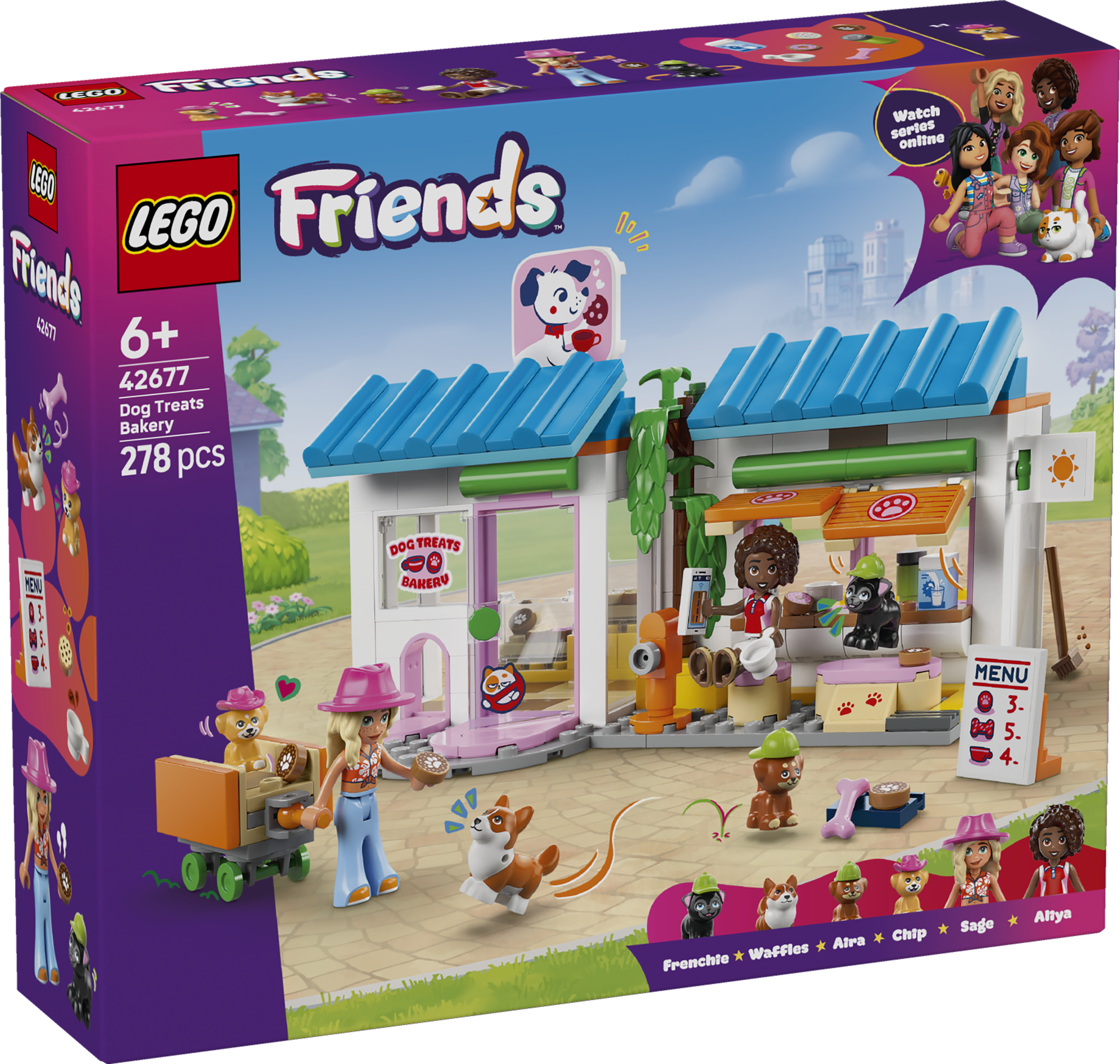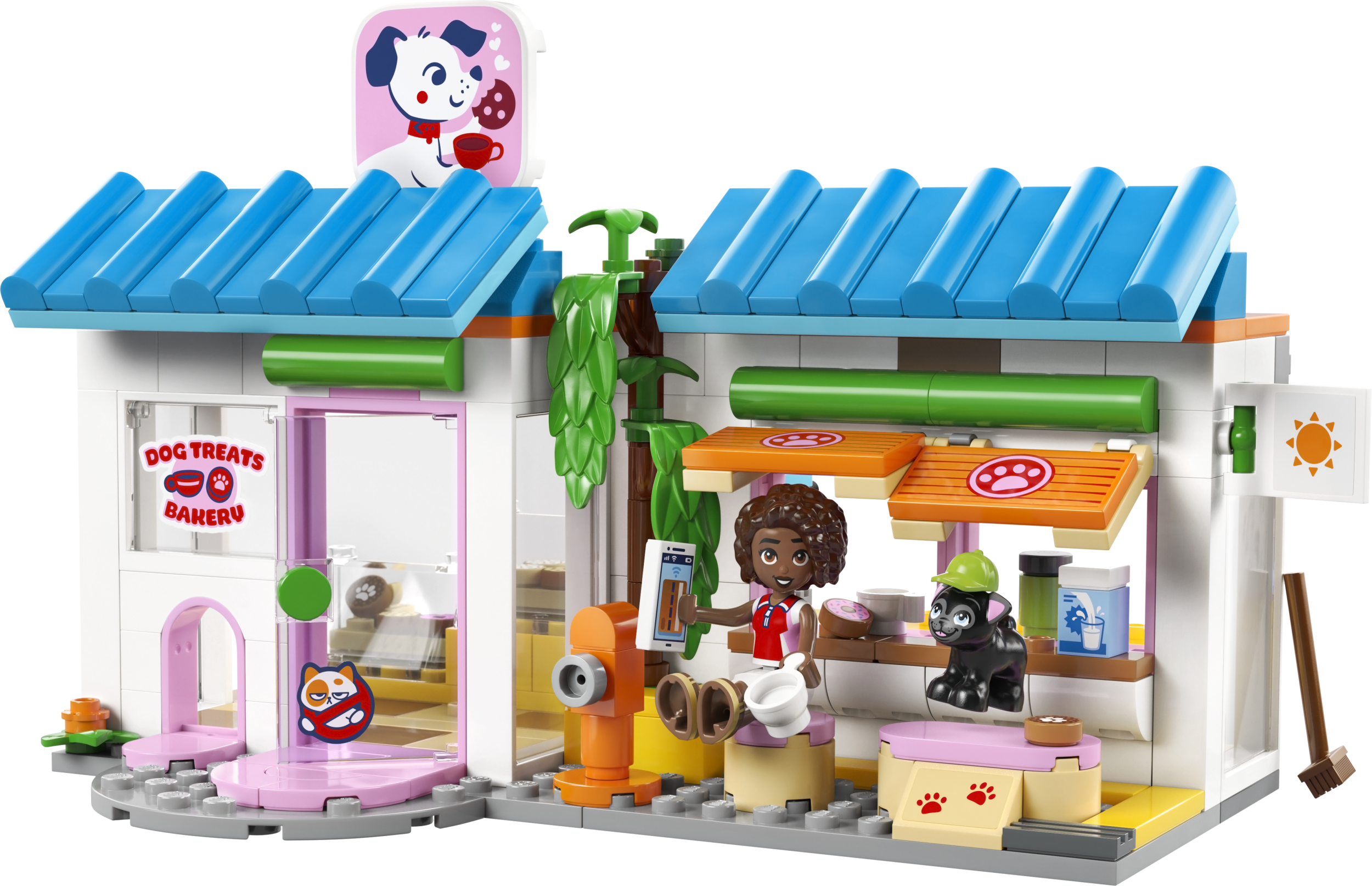 Iedvesmo bērnus radīt pašiem savus saldos stāstus ar LEGO® Friends Suņu gardumu ceptuvi (42677) – rotaļlietu meitenēm un zēniem no 6 gadu vecuma. Ceptuves veikaliņā ir daudz humoristisku detaļu un rotaļu aksesuāru, kas iepriecinās mājdzīvnieku mīļotājus. Ieraugi cepeškrāsni, kafijas automātu, ledusskapi un sēdvietas, kā arī daudzas dzīvniekiem draudzīgas detaļas, piemēram, aizraujošas norādes, mājdzīvnieku pārvadātāju un durtiņas. Ir pat rampa, kas ved līdz letei, lai četrkājainie draugi varētu palīdzēt apkalpot klientus!