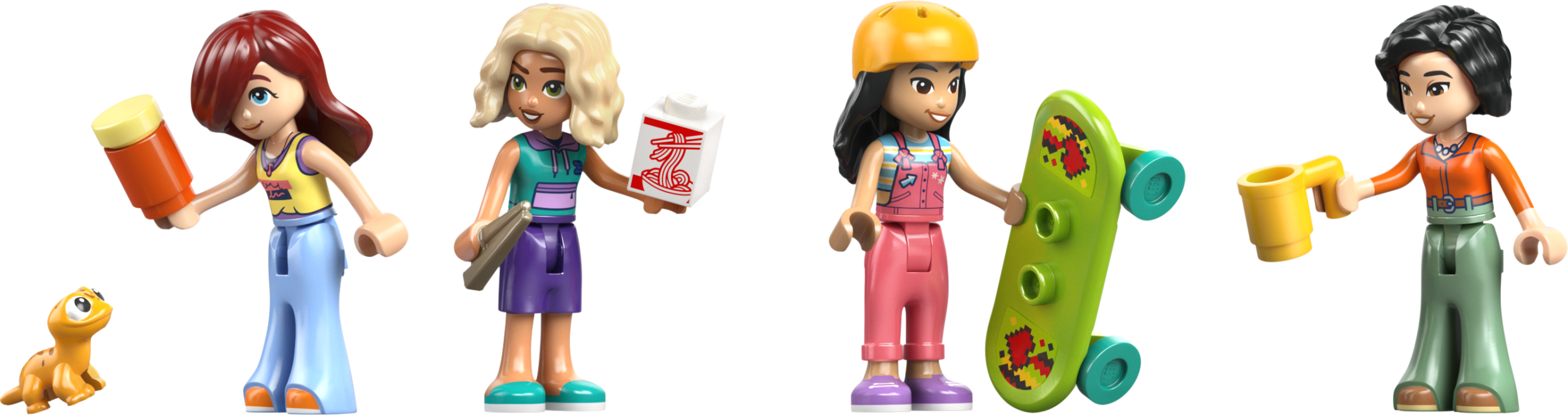 - TIEŠSAISTES ŠOVS. Atklāj vairāk radošu rotaļu ideju ar citiem komplektiem (jāiegādājas atsevišķi) un tiešsaistes šovu LEGO® Friends: The Next Chapter, kur bērni var iepazīt Hārtleikas pilsētas varoņus