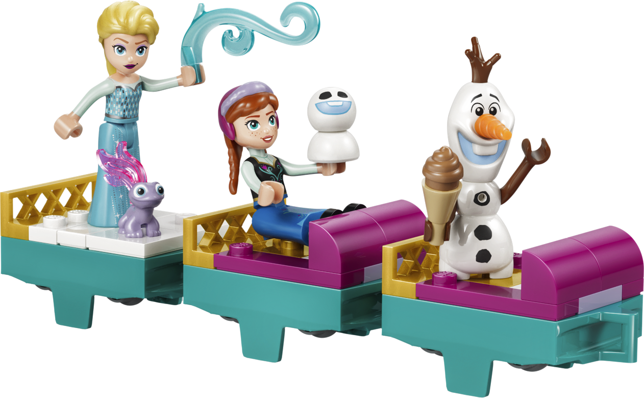 - ПЕРСОНАЖИ И ФУНКЦИИ — в наборе есть персонажи LEGO® ǀ Disney Эльза, Анна, Олаф, Бруни и три снежка, сундук открывается, а сани скользят по трассе, и в них можно посадить из персонажей.
