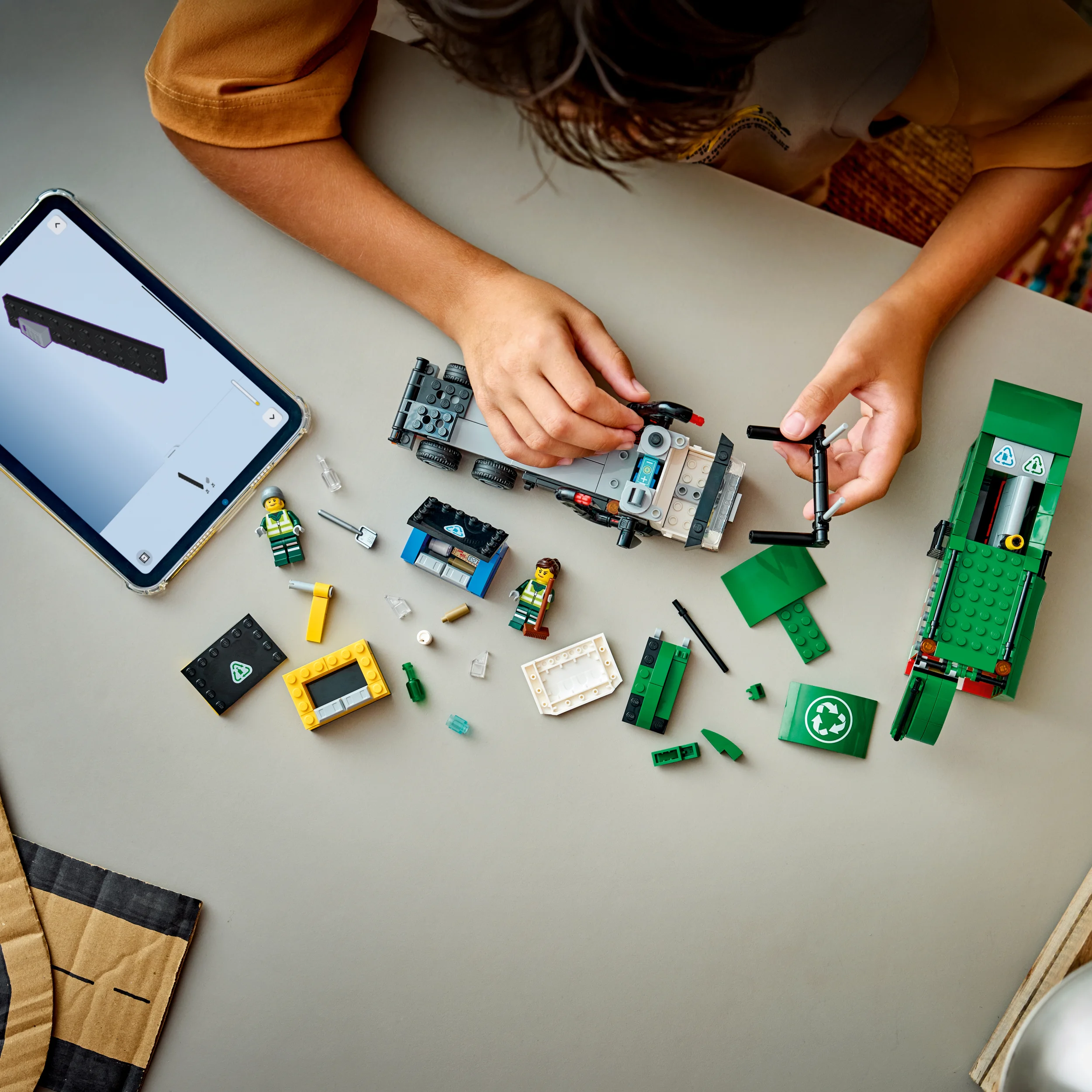 Дети могут наслаждаться впечатлениями от сборки набора «Грузовик для переработки отходов» LEGO с приложением LEGO Builder, в котором цифровое руководство позволяет вращать и приближать модель в 3D в ходе строительства, а также сохранять и отслеживать прогресс. Набор содержит 434 детали.